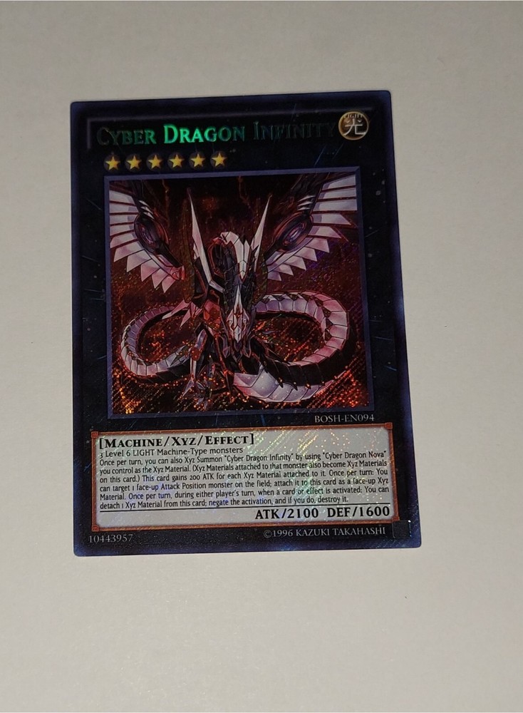 You are bidding on Cyber dragon Infinity BOSH-EN094. The card is in mint condition. Shipment will follow three days after payment is received. If you require faster shipping or have questions please let us know.