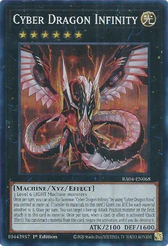 You are purchasing: Yugioh! Cyber Dragon Infinity - RA04-EN068 - Super Rare - 1st Edition Condition: Near Mint | Language: English All photos are stock, unless mentioned otherwise. Card edition, rarity, etc. is listed in the title and description. Items will be shipped within 1 business day upon receiving cleared payment. We ship Monday through Friday in order to get the item(s) to you as quickly as possible Before leaving neutral or negative feedback, please contact us beforehand so we can discuss the issue. Feel free to message me with any questions you have regarding this auction or my policies. Shipping Options: Non-Expedited Shipping - $0.99 Orders $24.99 (exc. sales tax) and under will be sent in a white envelope in a card saver + soft sleeve using eBay's Standard Envelope tracking service. Orders $30.00 (exc. sales tax) and over will be sent with free USPS tracking information w/ toploader + soft sleeve. Priority Mail - $9.99 2-3 Day shipping Orders will be shipped in a flat rate envelope in a toploader + soft sleeve. Priority Express Mail - $29.99 1-2 Day shipping Orders will be shipped in a flate rate envelope in a toploader + soft sleeve. *All orders over $100 will be sent with free insurance. All orders over $250 will be sent with free insurance and signature confirmation.* Card Grading: Near Mint (NM) - Cards with this grade will show minimal to no wear from shuffling, play or handling and can have a nearly unmarked surface, crisp corners and unblemished edges outside of a few minimal flaws. Holographic cards are more scrutinized than non-holo cards. Lightly Played (LP) - Cards with this grade may have a few dings, light playwear and/or edgewear. A few surface scratches are acceptable. A crease or bend is acceptable if it is less than approximately 1/2 inch in size and is only visible on one side. Moderately Played (MP) - Cards with this grade may have dings, playwear and/or edgwear, 1 or 2 creases or bends that do not go through the length of the card. Cards may have a 1 or 2 deep scratches. Heavily Played (HP) - Cards with this grade may have dings, playwear and/or edgwear, creases or bends that may go the length of the card, markings and/or coloring, tears on the edges. Despite being the lowest of grading, these cards are still tournament legal. If you receive a card not in the stated condition, please contact us to return the item for a full refund. Please note that card centering is not guaranteed nor is it a factor when we grade a card for condition. Thank you for buying.