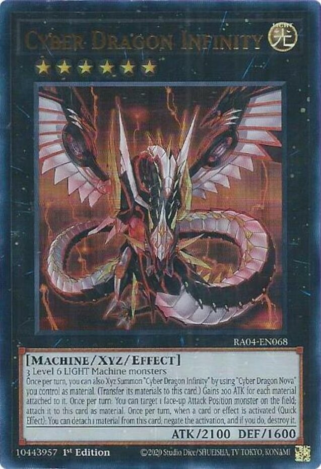 You are purchasing: Yugioh! Cyber Dragon Infinity - RA04-EN068 - Ultra Rare - 1st Edition Condition: Near Mint | Language: English All photos are stock, unless mentioned otherwise. Card edition, rarity, etc. is listed in the title and description. Items will be shipped within 1 business day upon receiving cleared payment. We ship Monday through Friday in order to get the item(s) to you as quickly as possible Before leaving neutral or negative feedback, please contact us beforehand so we can discuss the issue. Feel free to message me with any questions you have regarding this auction or my policies. Shipping Options: Non-Expedited Shipping - $0.99 Orders $24.99 (exc. sales tax) and under will be sent in a white envelope in a card saver + soft sleeve using eBay's Standard Envelope tracking service. Orders $30.00 (exc. sales tax) and over will be sent with free USPS tracking information w/ toploader + soft sleeve. Priority Mail - $9.99 2-3 Day shipping Orders will be shipped in a flat rate envelope in a toploader + soft sleeve. Priority Express Mail - $29.99 1-2 Day shipping Orders will be shipped in a flate rate envelope in a toploader + soft sleeve. *All orders over $100 will be sent with free insurance. All orders over $250 will be sent with free insurance and signature confirmation.* Card Grading: Near Mint (NM) - Cards with this grade will show minimal to no wear from shuffling, play or handling and can have a nearly unmarked surface, crisp corners and unblemished edges outside of a few minimal flaws. Holographic cards are more scrutinized than non-holo cards. Lightly Played (LP) - Cards with this grade may have a few dings, light playwear and/or edgewear. A few surface scratches are acceptable. A crease or bend is acceptable if it is less than approximately 1/2 inch in size and is only visible on one side. Moderately Played (MP) - Cards with this grade may have dings, playwear and/or edgwear, 1 or 2 creases or bends that do not go through the length of the card. Cards may have a 1 or 2 deep scratches. Heavily Played (HP) - Cards with this grade may have dings, playwear and/or edgwear, creases or bends that may go the length of the card, markings and/or coloring, tears on the edges. Despite being the lowest of grading, these cards are still tournament legal. If you receive a card not in the stated condition, please contact us to return the item for a full refund. Please note that card centering is not guaranteed nor is it a factor when we grade a card for condition. Thank you for buying.