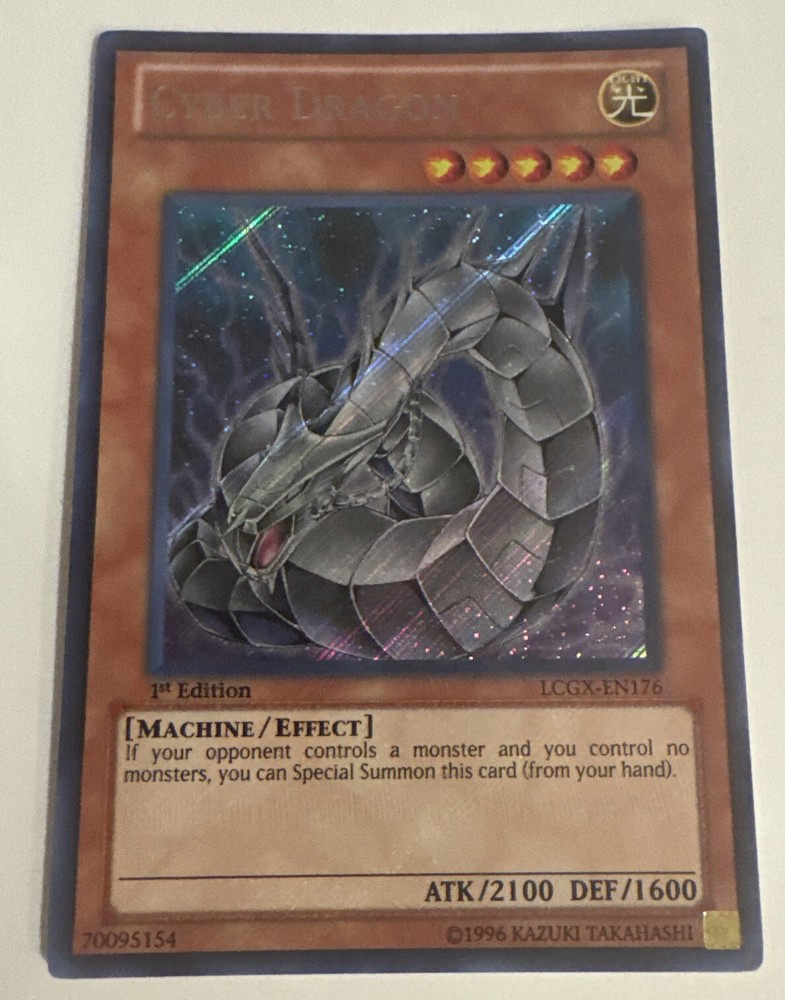 Yugioh Cyber Dragon LCGX-EN176 Secret Rare 1st Ed NM Full Bleed. Near mint. ***I will consider REASONABLE offers. If you offer 50% off or more I will not consider that a reasonable offer, and will be less likely to consider a lower price. Please do not ask me for a best price and counter with something way lower. I do combine shipping but do not ask for a shipping discount on a single item. We calculate shipping based on weight, size, and location.