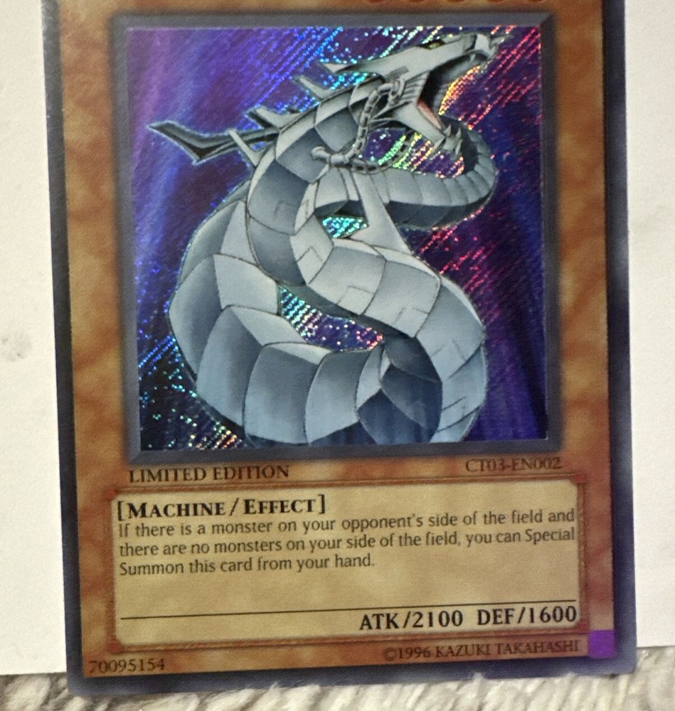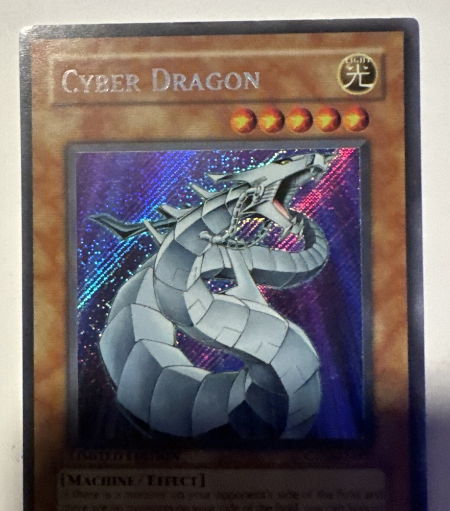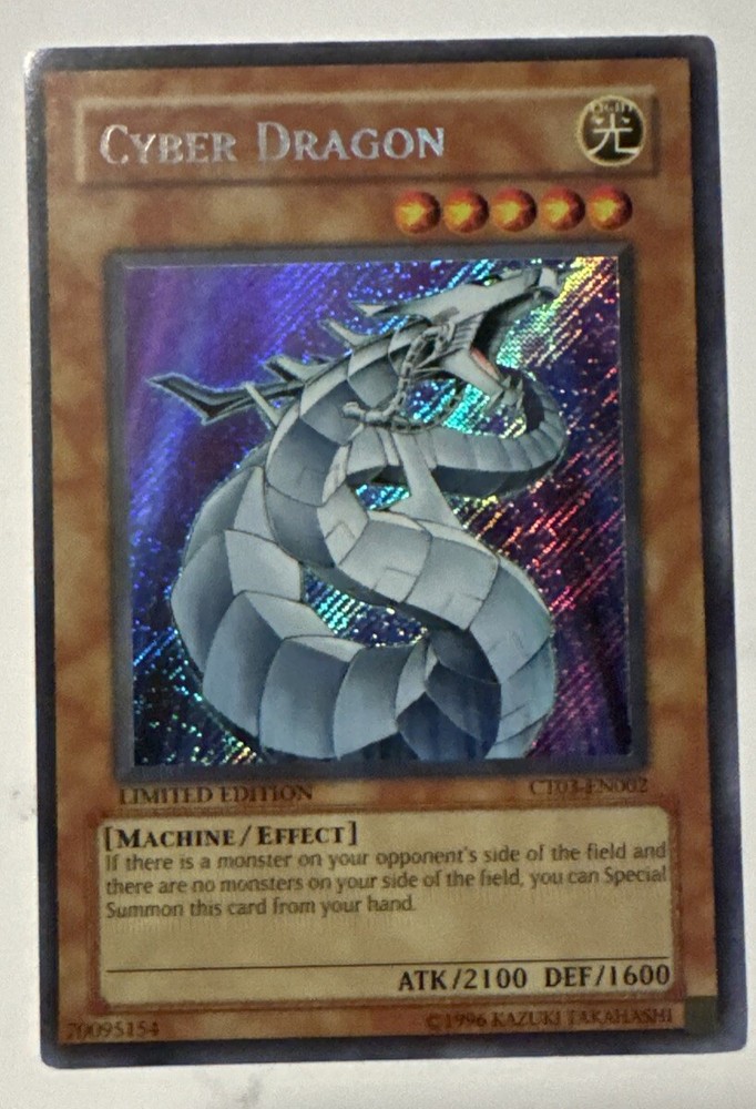 Yugioh Cyber Dragon Limited Edition Secret Rare CT03-EN002. Scuffing on light scratches on the back ***I will consider REASONABLE offers. If you offer 50% off or more I will not consider that a reasonable offer, and will be less likely to consider a lower price. Please do not ask me for a best price and counter with something way lower. I do combine shipping but do not ask for a shipping discount on a single item. We calculate shipping based on weight, size, and location.