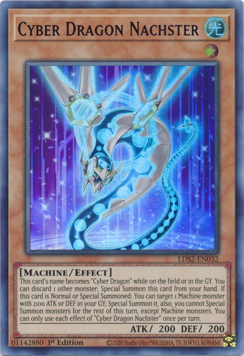 Selling what's listed below. Card is in near mint or better condition. Cyber Dragon Nachster - Ultra Rare - Can be purple, blue, or green Shipping is by USPS. Cards are shipped safely in a top loader.