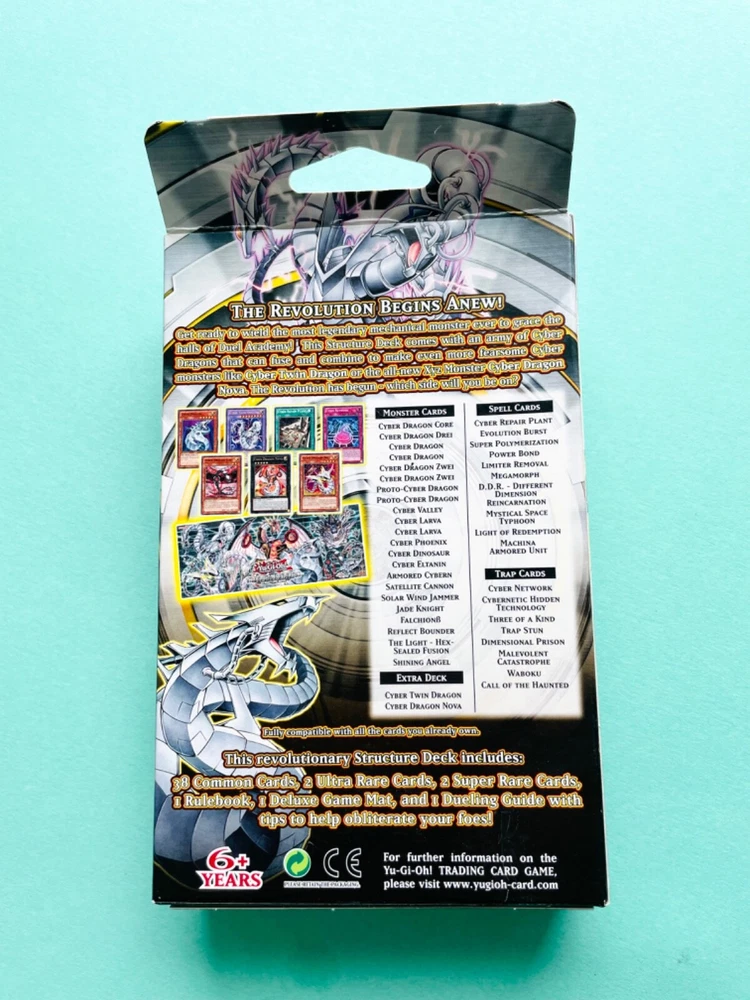 What you get: You will receive a Brand New sealed, Cyber Dragon Revolution 1st edition starter deck box! Additionally, you will receive 100 random cards! 15 of these will be randomly selected from rare, super rare or higher rarity and the other 70 will be comprised of common cards with a mix of 1st edition and common but all in good/near mint condition! Slight emphasis on machine cards! All of them can come from any current set of cards currently made (as of March 2025) so use these cards to bolster your decks or just for the love of the game and collecting!! They are all selected at RANDOM so do not expect to get any specific card. Check out our other yugioh card listings! Check the pictures for condition, box has slight wear on corners.