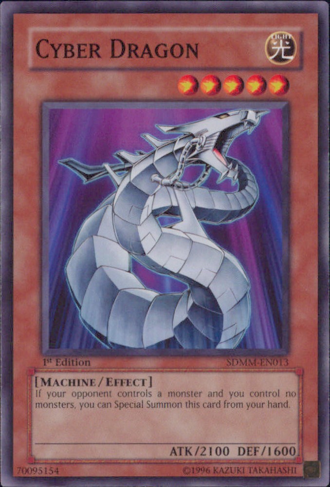Yugioh Cyber Dragon #SDMM-EN013 Structure Deck: Machina Mayhem 2010 tcg Yugioh This is the actual picture of the card. PLEASE NOTE THE BACK OF CARDS ARE NOT SHOWN ON PURPOSE. OUR SCANNER FOR WHATEVER REASON CHOPS OFF MOST OF THE CARD ON THIS SPECIFIC CARD AND WOULD NOT BE AN ACCURATE REPRESENTATION OF SAID CARD. SINCE THESE ARE LESS EXPENSIVE CARDS BACK OF PHOTOS WILL BE AT THE REQUEST OF THE SELLER WITHIN A 24 HOUR TURNAROUND TIME. THE BACK OF CARDS ARE IN NM CONDITION UNLESS OTHERWISE NOTED. Thank you! Be sure to check out the rest of our Huge Card collection we have listed in our store. We always have a sale on a cards and sometimes within sets. All cards are between LP - NM unless otherwise noted. Please inspect pics. If you'd like more pictures, shoot us a message and we'll get back to you within 24 hours. Any card listing raw or graded are the actual pictures of that card. At the moment, we do not have a top of the line scanner so some pictures may have scan lines, dust particles, imperfections in the scan in general. We do our best to identify any imperfections on the card and use our best judgement at what we think the grade of the card is. If there are multiple quantities of a card, it'll be a closer depiction of your purchase. If you are unhappy with your purchase, we do allow free returns using the same shipping method you used to receive the card. Please do not hesitate to reach out with any questions you may have. If you do request additional pictures, please keep in mind that there will be a 24 hour turnaround time. How we ship: All graded cards no matter the size or amount will be shipped in a cardboard mailer or box (size depending on order). All single raw cards with a purchase value OVER $20 will be shipped in a sleeve, top loader, and painter's tape inside a bubble/cardboard mailer. Single Raw Cards with a purchase value UNDER $20 will be shipped in a sleeve, top loader, and painter’s tape inside an envelope and shipped using eBays standard envelope service. Anything in between will be TBD depending on the order. Please do not hesitate to reach out with any questions. We’ll be more than happy to answer them. We want to make sure you are happy at the time of purchase and when you receive your cards. Tanks 4 Lookn!