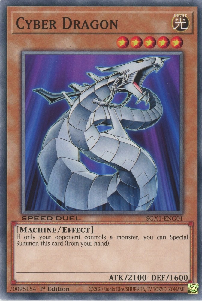 Yugioh Cyber Dragon SGX1-ENG01 Common 1st Edition NP You can find more Yu-Gi-Oh cards of all value and rarity in our other listings All cards are in excellent condition unless stated otherwise and the photos are of cards we own but may not be the exact card you receive due to the quantities listed.