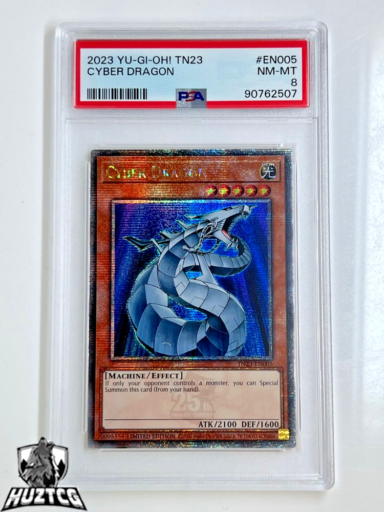 Welcome to HuzTCG ! You are bidding on the following Yugioh PRODUCT (Note all prices are the best on eBay and all cards are brand new booster fresh and in English): 1x Cyber Dragon - TN23-EN005 - Secret Rare - Limited Edition - PSA 8 Shipping: All cards will be dispatched within a sleeve and sent in padded packaging within 1-2 working days after purchase is completed. All orders will be sent via Royal Mail and free shipping is offered to all UK customers. About us: We are a fast growing, trusted company made from players/collectors and gaming enthusiasts just like all of you! You can rest assured that we have a passion for all things cards and game related and our passion translates into the service we want to provide. Have peace of mind that we will do everything we can to be a brand you can trust! Our Service Promise: We aim to provide 5* service to all our customers and if you feel for any reason you we have fell short on this, then contact us and we will do our best to rectify this. All cards are in NM condition or better.