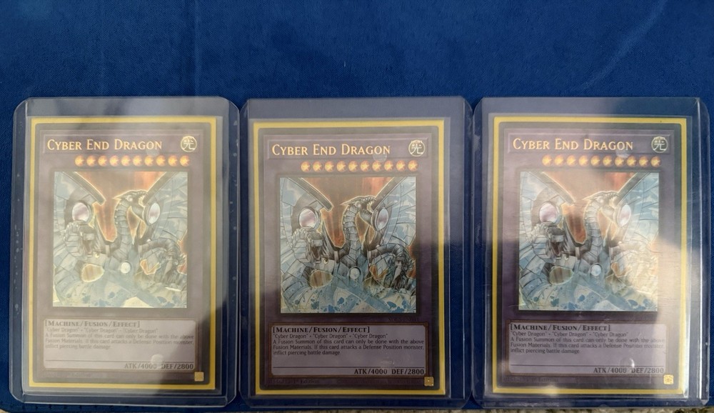 Yugioh Cyber End Dragon x 3 Misprint Set. The misprint is Cyberdark End Dragon picture inside of Cyber End Dragon.