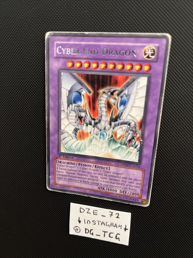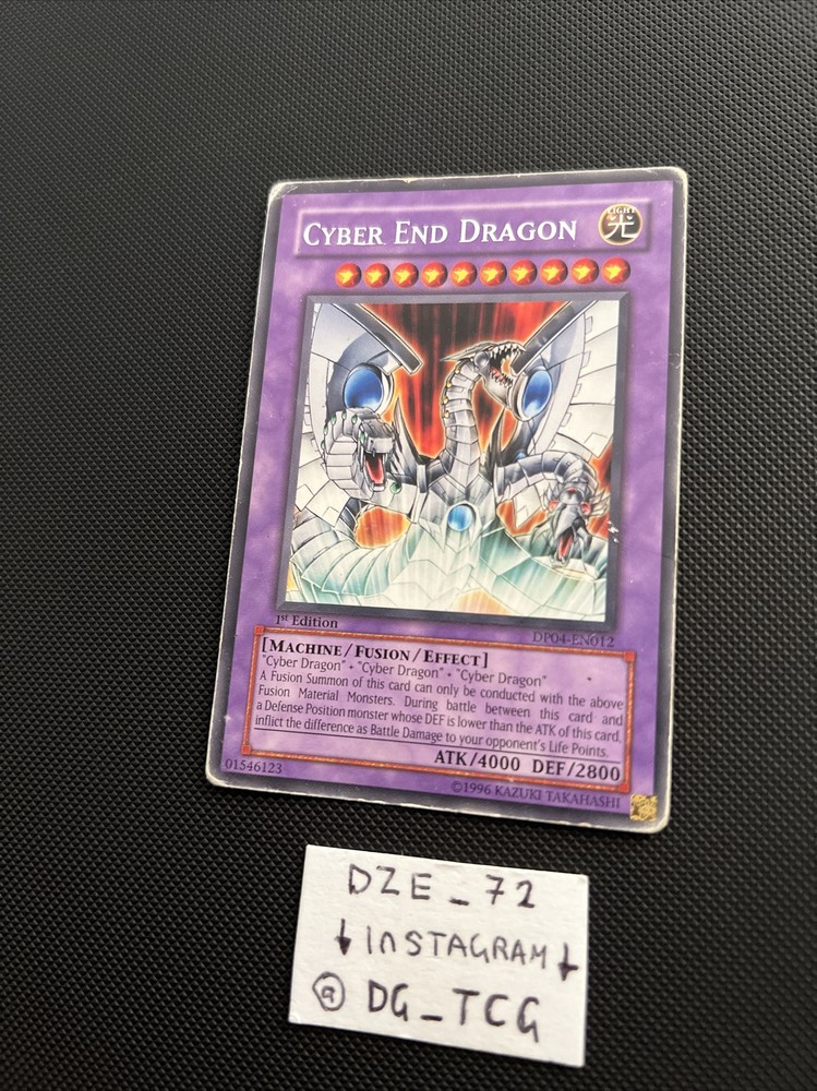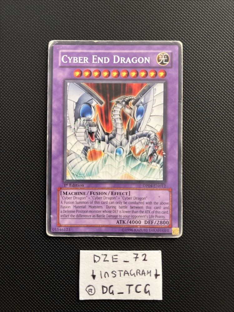Yugioh - Cyber End Dragon - DP04-EN012 - Rare - 1st Edition - MP. Condition 5/6-10 - medium played ⚠️COMES WITH NORMAL STANDARD SIZE ENVELOPE + TOP LOADED ⚠️ ⚠️ EXTRA $8,99 IF YOU WANT THE EXTRA PROTECTION + TRACKING & its Cardboard guarded / MAIL PADDED ⚠️ ( I DO COMBINED SHIPPING WITH ALL PURCHASES ) 📦 IF WANTED BULK MSG ME ON INSTAGRAM @DG_TCG 📲 🎉 GIVING BACK MONTH 🎉 BUY 5 + cards GET A SPECIAL GIFT & BUY 10+ cards GET A DOUBLE SPECIAL GIFT 🎉 Comes with sleeve / TOP LOADED ⚠️ Fast & Reliable Check my ebay account for more Yugioh & Pokemon & Football & NBA & UFC CARDS And MORE !!!!! ⚠️ Follow my Instagram for more card steals @dg_tcg ✅✅✅✅✅✅✅✅✅✅
