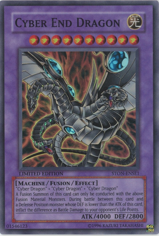 Yugioh Cyber End Dragon STON-ENSE1 Common You can find more Yu-Gi-Oh cards of all value and rarity in our other listings All cards are in excellent condition unless stated otherwise and the photos are of cards we own but may not be the exact card you receive due to the quantities listed.