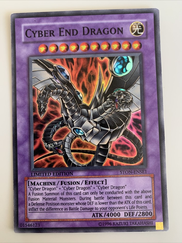 Dive into the world of high-stakes duels with the limited edition Cyber End Dragon from the Strike of Neos set. This Ultra Rare card, named after its formidable appearance and powerful presence on the battlefield, is a must-have for collectors and players alike, seeking to enhance their Yu-Gi-Oh! TCG arsenal with a touch of rarity and might. Cyber End Dragon, numbered STON-ENSE1, stands out not just for its rarity, but also for its unique capabilities in gameplay. Owning this card is akin to holding a piece of the game's history, and its potential to sway the tides of battle makes it a prized asset for any Yu-Gi-Oh! enthusiast.