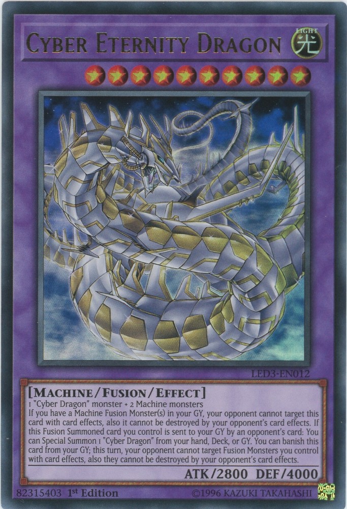 Yugioh Cyber Eternity Dragon LED3-EN012 Ultra Rare Mint Condition You can find more Yu-Gi-Oh cards of all value and rarity in our other listings All cards are in excellent condition unless stated otherwise and the photos are of cards we own but may not be the exact card you receive due to the quantities listed.