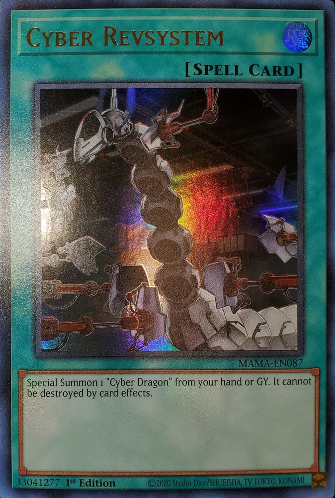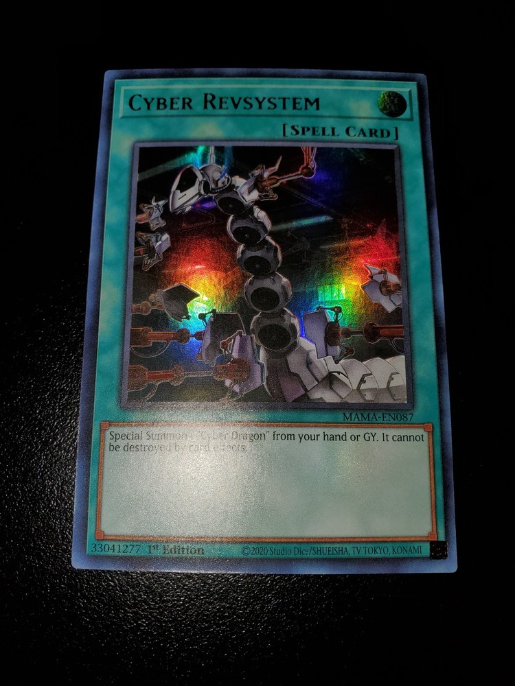 Yugioh Cyber Revsystem UR 1st Ed. MAMA-EN087 Near Mint Will ship safely & securely through eBay envelope tracking. Penny sleeve inside toploader wrapped in an antiweather and antislip team bag. As a long time seller on eBay, I want every order placed with me to arrive timely and safely. You are entrusting me with your hard earned money and I will not only meet, but surpass your trusted expectations. Feel free to message me for further pictures or questions.