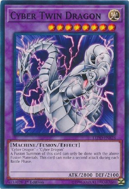 Yu-Gi-Oh! Cyber Twin Dragon - 1st Edition The card is in NM / Mint condition. Card will be placed in a top sleeve and loader for security. Also will include a free Holographic card which can be Super, Ultra, Secret, etc! Card Information LEDD-ENB26 - 1st Edition Legendary Dragon Shipping Information Free Shipping to US only. Will not ship Internationally at this time. Cards will be mailed out first class with tracking information. Return Policy No returns allowed on this auction.