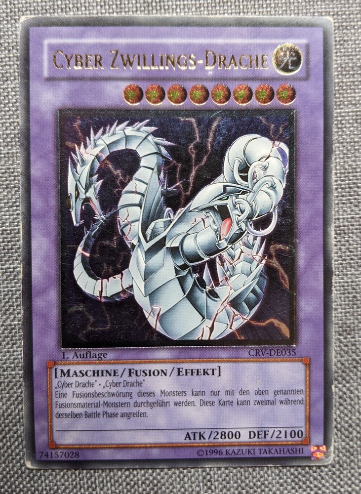 This card is absolutely stunning! The German Ultimate Rare print makes Cyber Twin Dragon pop with its gorgeous foil texture and crisp details. As a 1st Edition from CRV, it’s a must-have for collectors. The seller provided clear photos and even offered high-res scans—super professional. Authenticity checks are thorough, and the card arrived in perfect condition. Highly recommend for any Yu-Gi-Oh! enthusiast looking for a rare gem!
