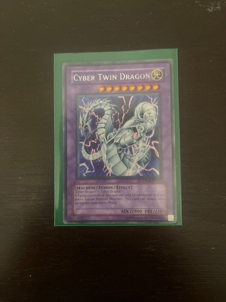 Introducing the powerful Cyber Twin Dragon card from the popular Yu-Gi-Oh! TCG game. This fusion card features two powerful dragons and machines, making it a formidable addition to any collection. The card is written in English and is suitable for players aged 6 and above. With its unique creature and monster type, this card is a must-have for any fan of the game. It falls under the categories of CCG Individual Cards, Collectible Card Games, and Toys & Hobbies. Don't miss out on the chance to add this amazing card to your collection!
