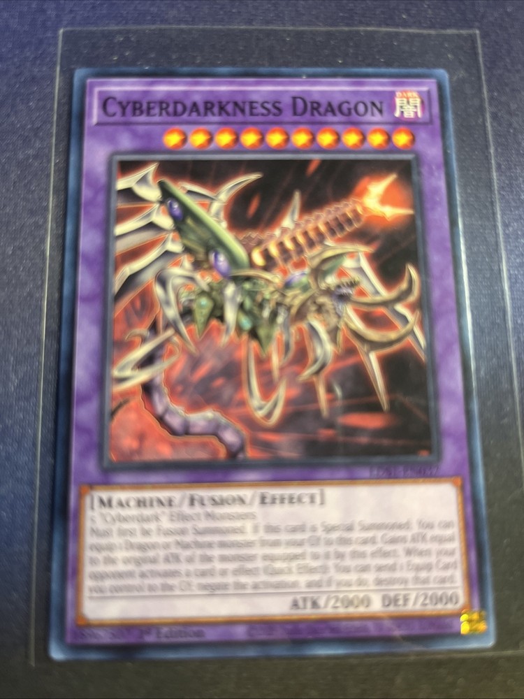 This is a Yu-Gi-Oh! TCG card named "Cyberdarkness Dragon" from the Structure Deck: Cyber Strike set. It is a Common card in Japanese size with English language text, illustrated by Yumi. The card features 1st Edition printing on card stock material. It was manufactured in the United States and is associated with the event Anime Expo.