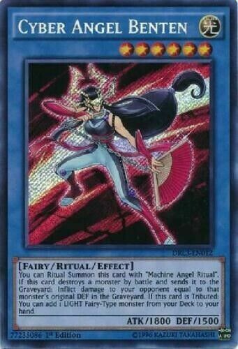 You're looking at near-mint 1st edition Cyber Angel Benten (Secret Rare) from Dragons of Legend 3. Cyber Angel's are proudly played by Asuka/Alexis in the anime and is one of my favorite decks! Benten is one of the core pieces of the deck, as its ability to fetch any Fairy is invaluable. Great for Alexis/anime fans, collectors and casuals, as well! I will throw in THREE cards from my collection if you select Buy It Now (stacks with multiple purchases)!! Please note I am using a stock photo. Cards will be shipped in card sleeve and toploader for protection. Make sure your mailing address is complete and up-to-date before you buy. Don't forget to include the apartment/unit number! Thanks for looking! Check out my other items :)