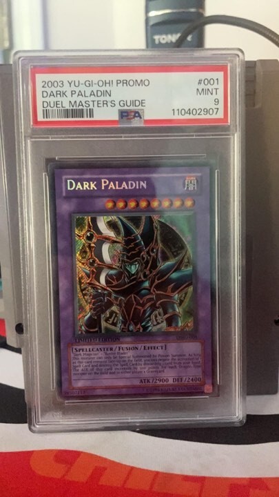 Unleash the power of Dark Paladin, a must-have for any Yu-Gi-Oh! TCG collector or duelist. This limited edition Secret Rare card, numbered DMG-001, is a true gem from the Duel Master's Guide set. Featuring the fusion of Dark Magician and Buster Blader, this spellcaster card boasts an attack power of 2900 and a defense strength of 2400, ready to bolster your deck with its Holo finish gleaming in the light.Crafted by Konami and professionally graded by PSA with a Mint 9 rating, this card is a testament to both its quality and collectability. A vintage piece from 2002, it's a timeless addition to any collection, perfect for those over the age of 4. The card comes in standard English language and does not include an autograph, ensuring its authenticity as a purely collectible item for enthusiasts and fans of the Yu-Gi-Oh! trading card game. This card will be shipped in a timely and professional manner. The product will come as shown, worry free.. Thanks for shopping with TCGsizzle!!!