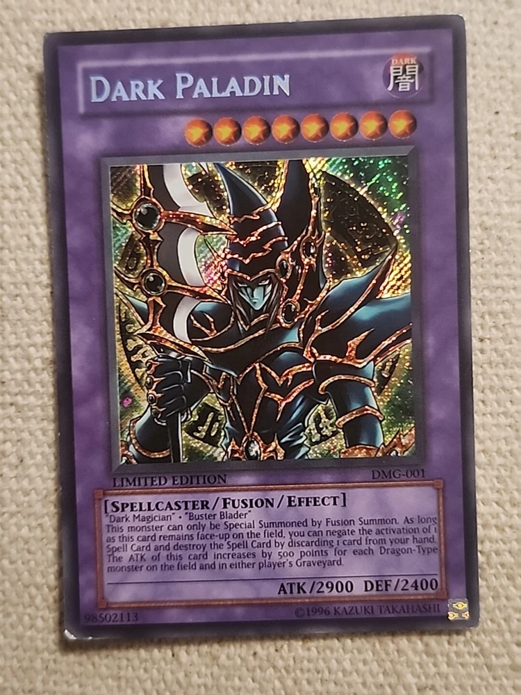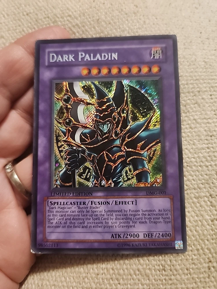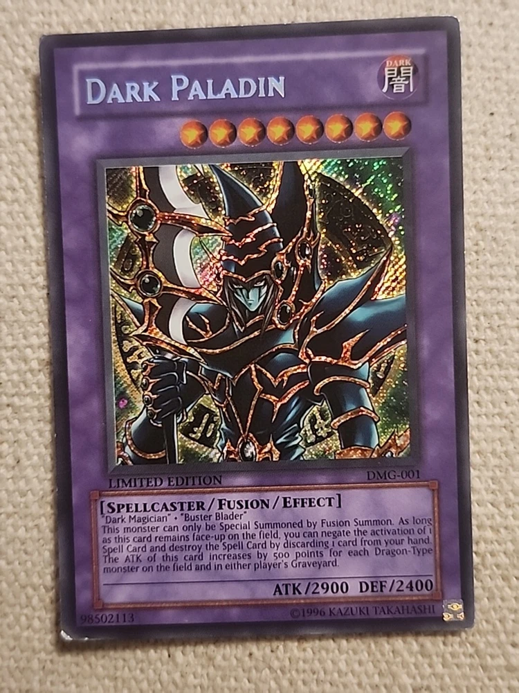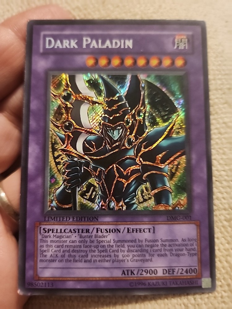 This limited edition Dark Paladin card from the Duel Master's Guide set is a must-have for any Yu-Gi-Oh! TCG player. With its Secret Rare rarity, this Fusion card is a powerful addition to your deck, especially if you're looking to add a touch of Darkness to your Attribute/MTG:Color collection. Featuring the iconic Card Name and Manufacturer Konami, this card comes in a moderately played (Very good) Condition Type, making it a great find for collectors and players alike. Don't miss out on its Features, including being a Promo and Limited Edition card, and add this Dark Paladin to your CCG Individual Cards collection today.