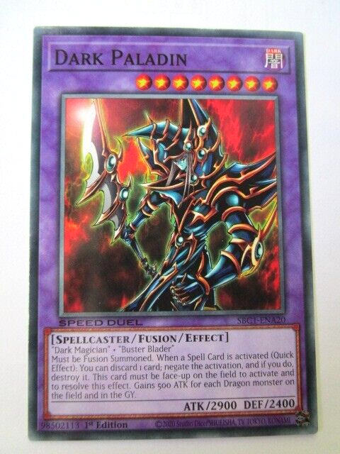 This Yugioh Dark Paladin card is a fantastic addition to any Speed Duel collection! The seller ships with great care—double sleeved and secured in a top loader for protection. The card arrived in perfect condition, just as described. The seller is super responsive and offers combined shipping, making it easy to grab multiple cards at once. Highly recommend for any Yugioh fan looking for a well-preserved, playable card!