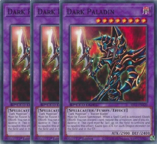 Dark Paladin x 3 1st Edition The cards are in NM condition. Cards will be placed in a top sleeve and loader for security. Also will include a free Holographic card which can be Super, Ultra, Secret, etc! Card Information SBC1-ENA20 - 1st Edition Speed Duel: Streets of Battle City