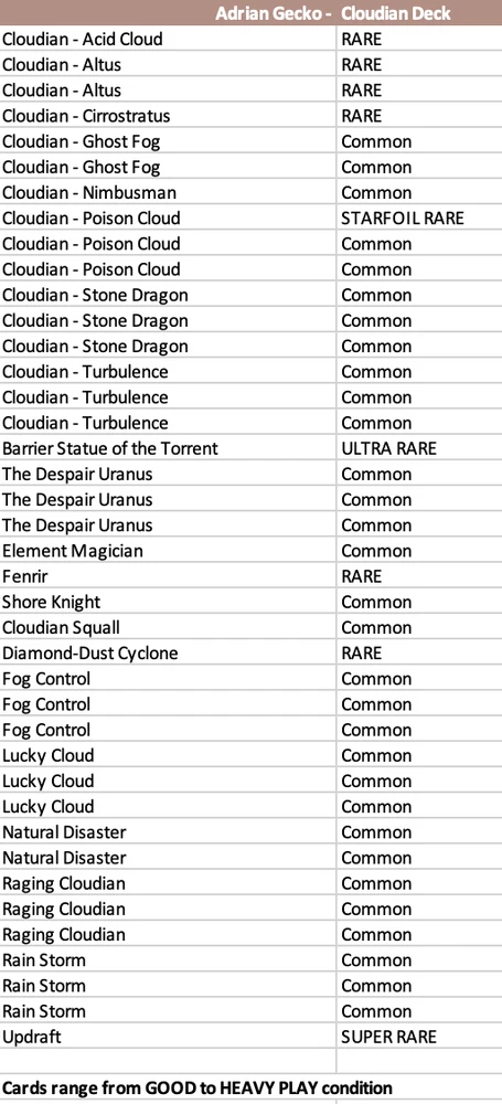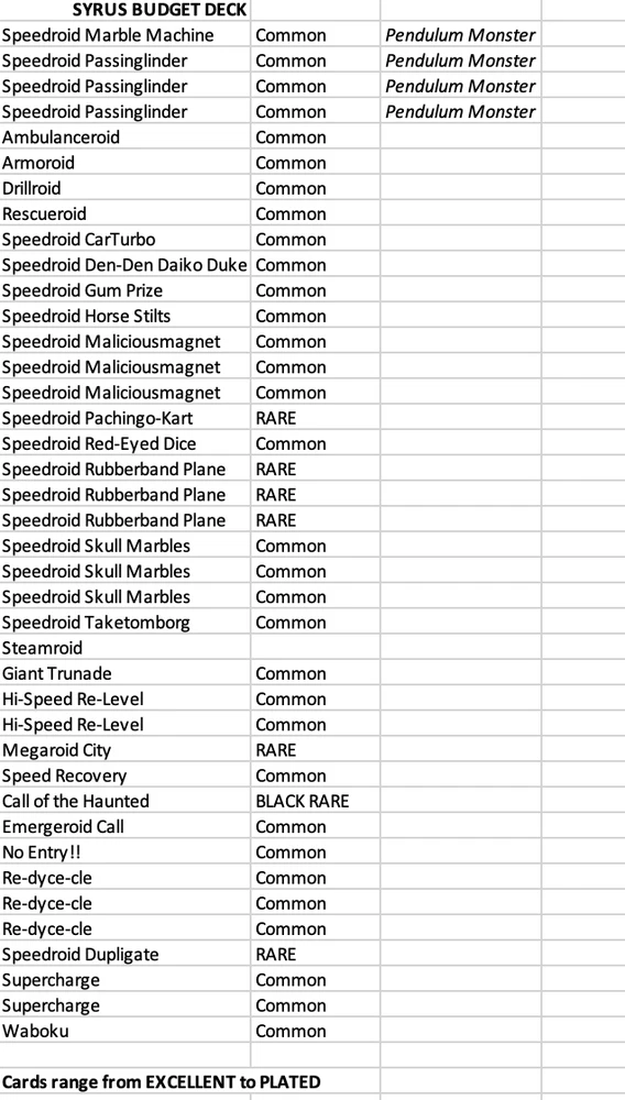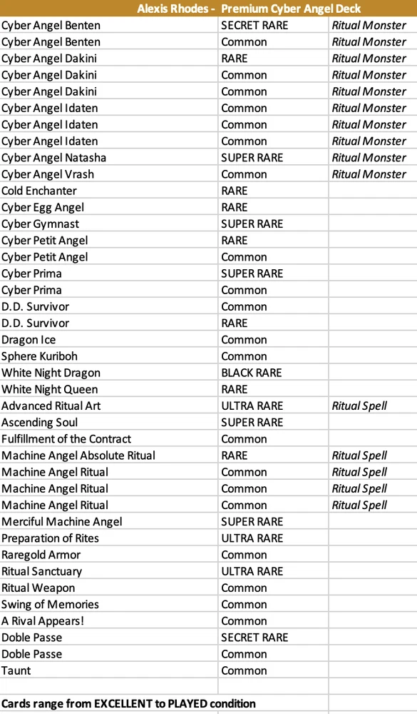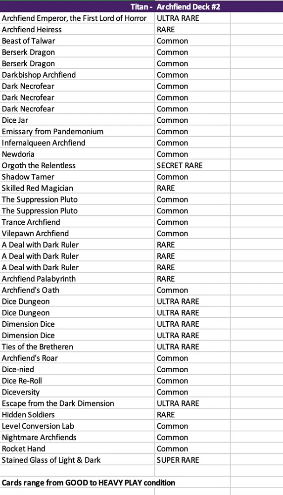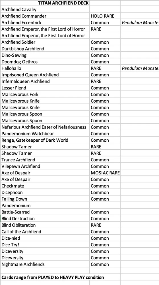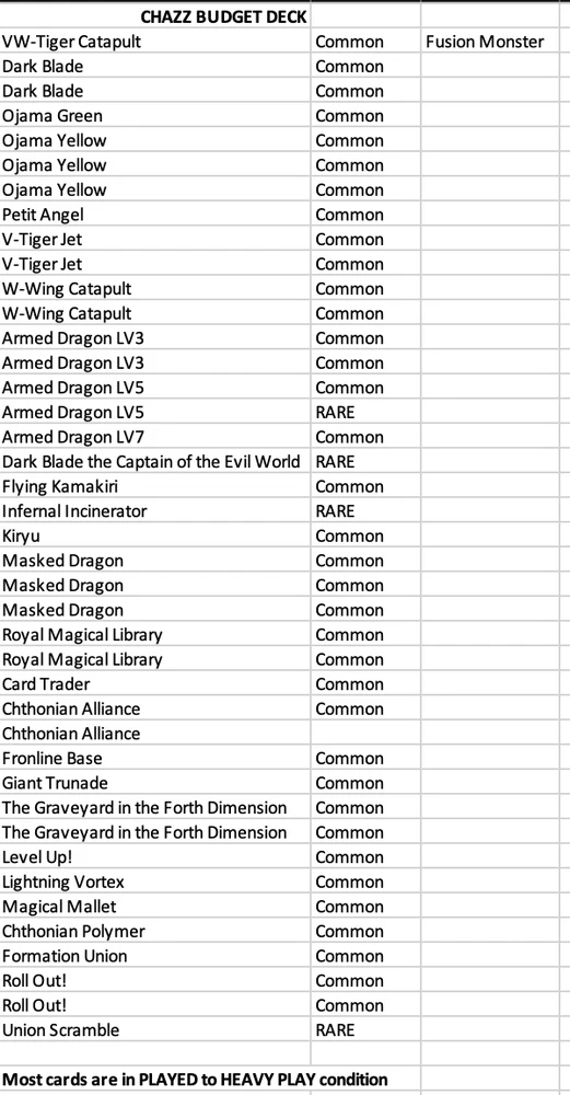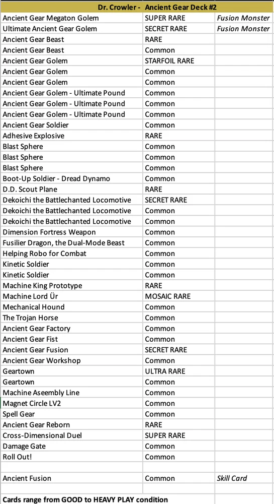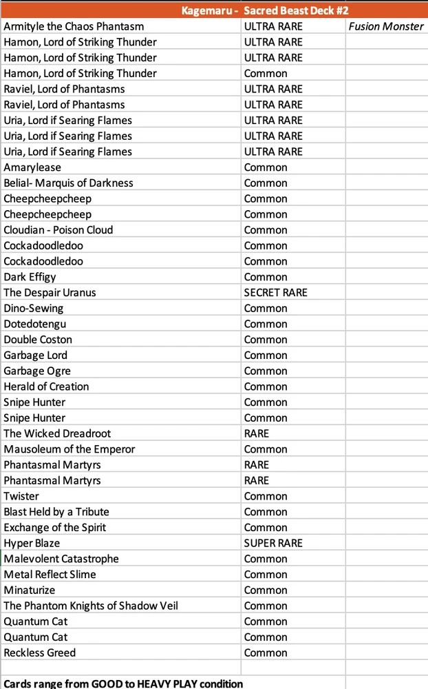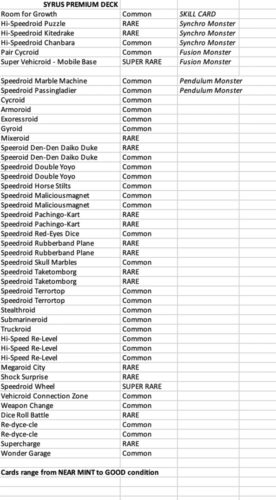 Character Decks from the Yu-Gi-Oh! GX Anime/Manga series ***New decks are currently being added. Check my store for more decks. ITEM HISTORY: These cards are all authentic Konami Yu-Gi-Oh! cards. I made the decks myself using cards from my collection. Please consult the card list in the photos to see the cards. These decks were not made to be competitive; they are based on decks that I build with friends for friendly, fun duels to play like the characters. SELLER HISTORY: I have been selling on eBay for many years now, specializing in Yu-Gi-Oh! cards. Because my daytime job can be demanding, I have decided to start selling nearly my entire collection. It may take me a while to get the listings up, so check back for new listings. SHIPPING: Decks will be shipped via USPS. Decks are packaged tightly to protect the cards and then shipped in a mailing envelope. You will have options to upgrade your shipping to Priority Mail for faster delivery. VOLUME PRICING: If you buy multiple listings from me during your checkout, you will significant discounts! Feel free to ask any questions you may have about the listings.