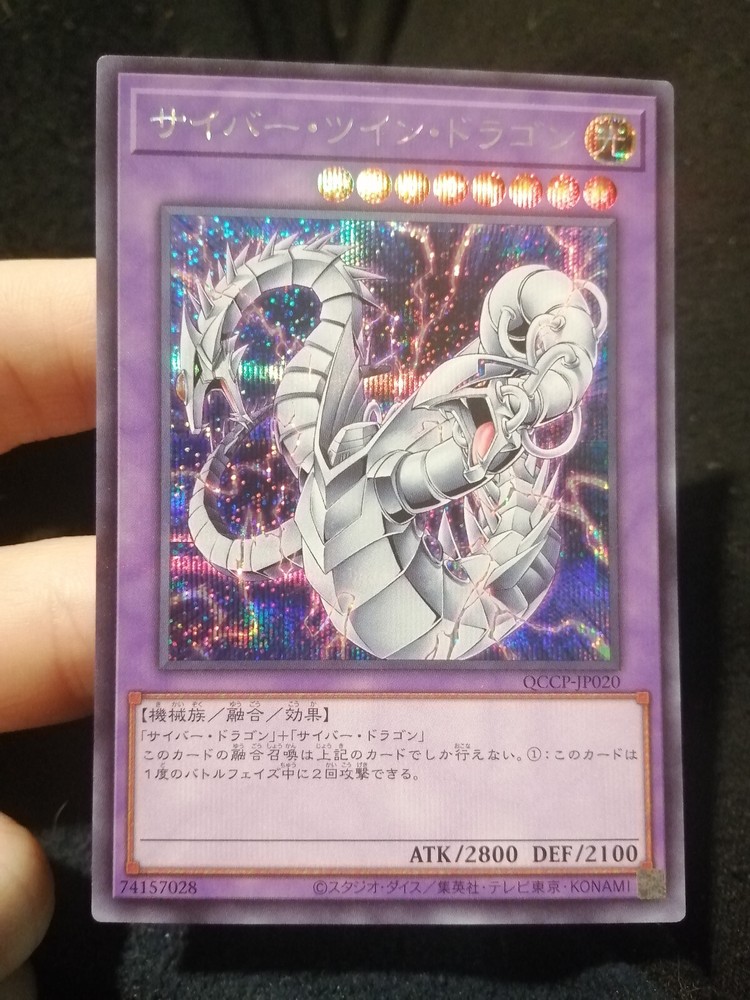Yugioh Japanese Cyber Twin Dragon QCCP-JP020 Secret Prismatic Rare NM Condizioni come da foto. Gli eventuali difetti più evidenti sono stati evidenziati The card's conditions are as seen in the pic. The main flaws have been highlighted, if any Per altre foto o altre informazioni sono a disposizione/For other photos or info please ask