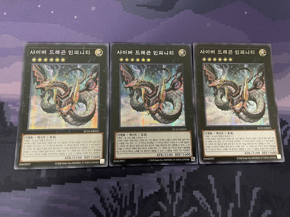 You are looking at 3 copies of Korean Cyber Dragon Infinity that are Secret Rare. Will be shipped in a sleeve and toploader. Please allow up to 3 business days for handling. I do not ship internationa...