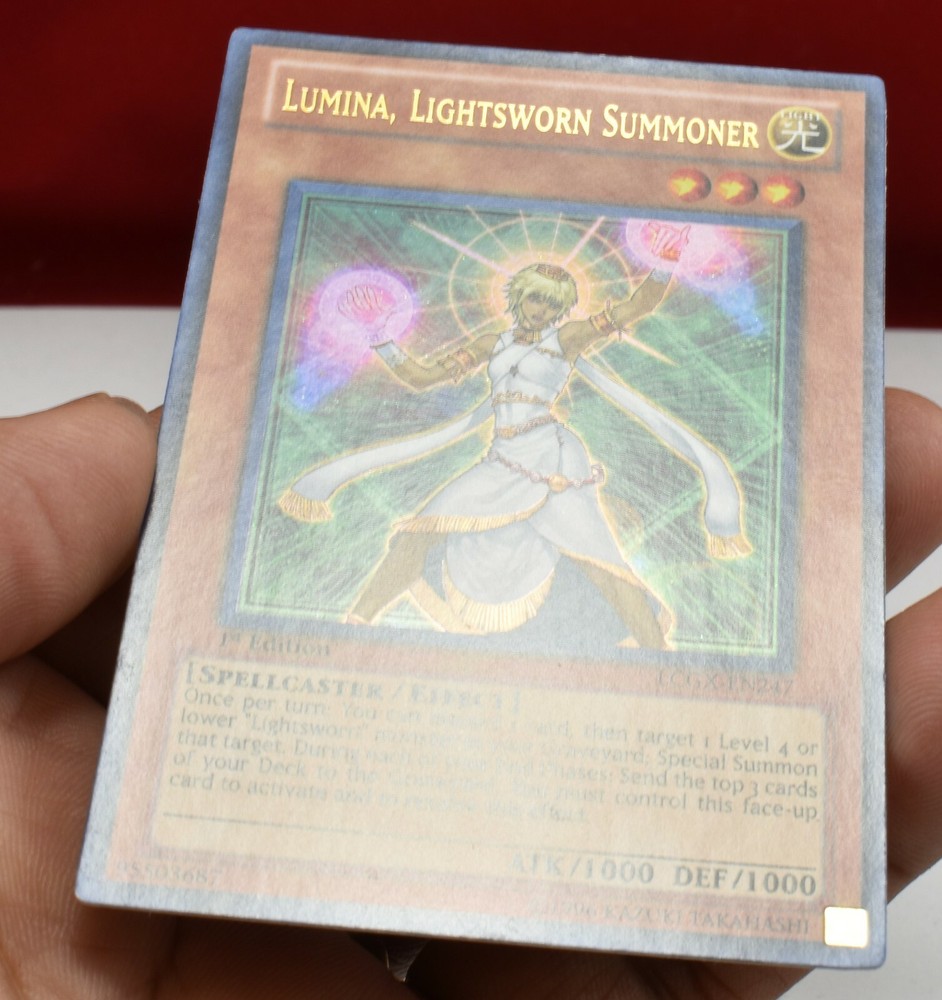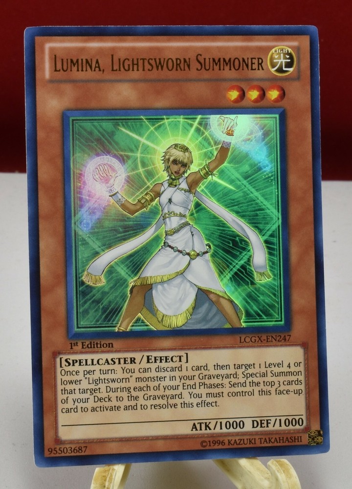 Yugioh Lumina, Lightsworn Summoner - LCGX-EN247 - Ultra Rare - 1st Edition NM DESCRIPTION: Yugioh Lumina, Lightsworn Summoner - LCGX-EN247 - Ultra Rare - 1st Edition NM . No returns. Card is in Near Mint to Mint Condition . True Collectors Card. See All photos. Recently I bought very big collection of Trading card and other collectibles from estate. This collection came form 18th century house. I don't have any idea on Trading card collection. Taking help from my son & internet to give best description possible. So if you find any mistake in detail, please excuse me. PHOTOS ARE PART OF ITEM DESCRIPTION ? Please do not assume anything. What you see in the photos with regard to this item is what you will receive. Please use your own judgment when determining condition, quality, style, age, and overall appearance. Please contact me prior to purchasing if any lingering questions, concerns, or need for additional information. Photos/Questions: Please view the photos for details as to design and condition. Additional photos are always available for the asking. I would recommend to check pictures with Ebay Zoom/Enlargement enhancement function so that you can clearly see what you will receive and decide on quality and condition. Buyer will receive the item(s) shown in the photos. Please do not assume anything ? if it is not in the pictures or not described in the listing. Ebay will issue buyer an invoice at time of purchase. Please contact me before purchasing if you have any questions or concerns. COLOR VARIANCE: Color tone can be affected by your screen monitor. Hue and depth of color is also affected by lighting sources (sunlight (v) room lighting (v) digital camera flash). Anything that is beyond normal wear and use we will specifically describe for you in the listing. PHOTO GALLERY: (Photos are taken with and without (normal room lighting) digital flash.?.color hue and tone (glisten, sparkle, clarity, etc) will always be affected by light source (sunlight ? room lighting ? direct glare or spotlight, etc.). Payment Policy: PayPal is the only payment method available. Credit cards accepted via PAYPAL only. Shipping & Handling: Item will be shipped via USPS Mail Service to anywhere USA. We do not ship to P.O. Box addresses ? need to have an actual street address without prior approval. USPS service selected is at seller discretion, e.g. USPS Priority Mail, USPS First Class Mail, or Parcel Post. Seller may opt to use less expensive USPS shipping service when available ? USPS requires Priority Mail to many regions, and restricts the use of Parcel Post. Likewise, upgrading service or adding signature confirmation/insurance is at seller discretion. Buyer pays for all shipping and handling costs - ebay calculator quoted shipping costs includes insurance, tracking, shipping service, signature confirmation (if needed) and sellers out of pocket costs for packaging material, packing, and handling. We use extreme care and extra packaging materials to avoid damage or breakage during USPS transportation and delivery ?our packages may take a bit longer to unpack, but better than to receive a one-of-a- kind damaged item. We do not make a profit from Shipping and Handling. If there is an overpayment, seller will refund overpayment after we have been reimbursed for all out of pocket expenses. Please contact me if any questions regarding S&H. Local Buyers: If you live locally near my area, you are welcome to pick up the item in person and save on Shipping and handling charges fees ? please contact me for pickup arrangements. International Shipping: International shipping with eBay GSP only. Loss/Damage: Loss/Damage during transit is covered by USPS insurance. If in the unlikely event that your item arrives damaged during USPS shipping, please DO NOT FILE AN EBAY CLAIM ? please contact Seller for assistance in filing your insurance claim - retain all packing materials, packing labels, and the damaged item. Your claim needs to be filed with your local USPS post office in order to obtain a registered USPS claim number. Please be prepared to show damaged item and/or provide photos of damage if requested. Please un-package and handle the purchased antique / collectible item with care to avoid possible post delivery unintended damage. Return Policy : Item(s) sold as is ? as described and photographed. Please be sure to read all listing information and view all photos before purchasing (BIN) . If, in the rare circumstance, the item you purchased is clearly and obviously not the item we described and photographed, please contact us as soon as possible via the Ebay Email messaging system. PLEASE READ ALL DESCRIPTION INFORMATION, ASK ALL QUESTIONS, AND LOOK WELL AT PHOTOS BEFORE BUYING. We are here to make sure that every customer is satisfied with their purchase! If you have any problems with any item, or you feel that you cannot leave 5-star feedback in every category, please contact us as soon as possible and give us a chance to resolve the issue. Feedback will be left for the buyer after feedback has been left for us here?feedback is confirmation to us that you received the item as expected. We try to accurately and completely describe the item, and aim to include any and all condition issues. We do not omit condition issues by intent or design. We mainly sell used/vintage/antique items, and some wear is to be expected. Our goal is that anything more than appropriate or expected normal wear is always documented in the listing and pictures. All items are kept in a smoke-free and pet free environment, but may have been exposed to smoke or pet at some point in their existence. THANK YOU FOR VISITING MY EBAY STORE! WE LOOK FORWARD TO DOING BUSINESS WITH YOU!