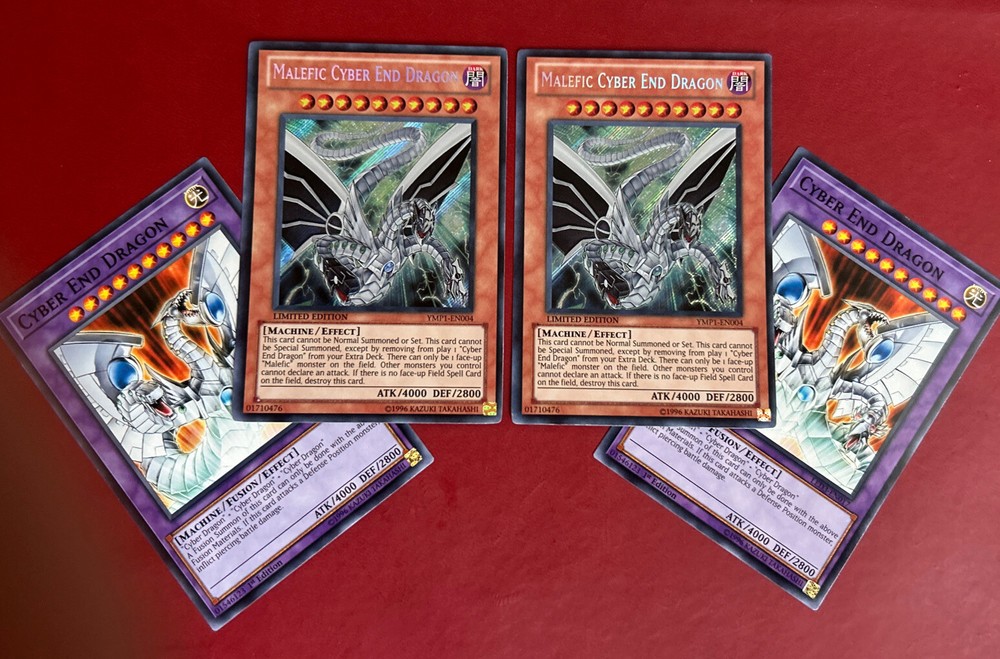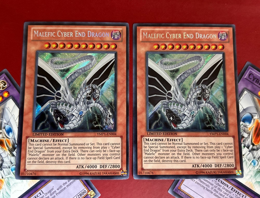 Yugioh - Malefic Cyber End Dragon YMP1-EN004 LE SECRET LP/NM X2 + FREE Fusions.