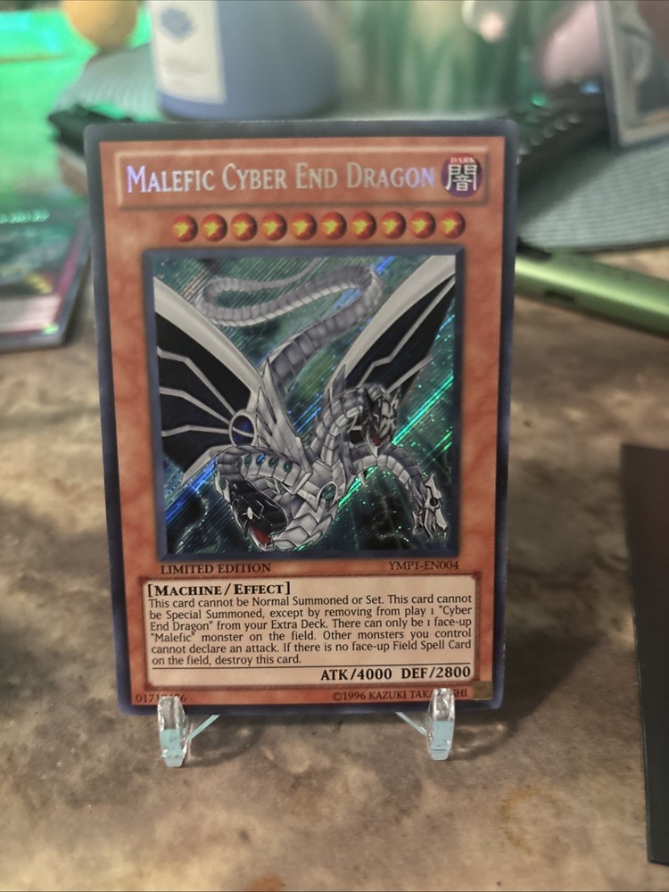 The Yugioh! Malefic Cyber End Dragon YMP1-EN004 card is a rare and highly sought after collectible from the 1996 Limited Edition set. Manufactured by Konami, this Secret Rare card features the character Maleficent from the 3D Bonds Beyond Time Movie Pack series. With a Dark attribute and Machine monster type, this holo card is a valuable addition to any Yu-Gi-Oh! collection. Its unique design and limited availability make it a must-have for fans and collectors alike.