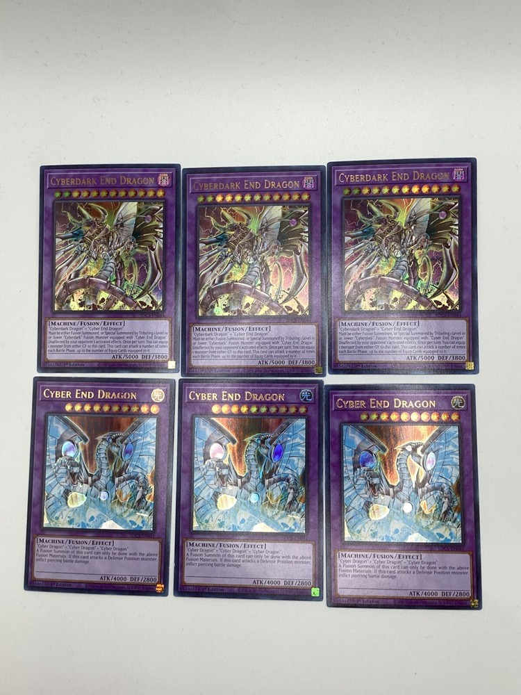 Yugioh Misprint Cyberdark End Dragon/Cyber End Dragon Playsets This listing is for (3) Misprint Cyberdark End Dragons and (3) Misprint Cyber End Dragons, six cards total.