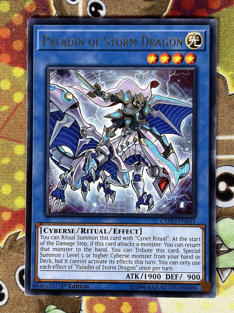 Yugioh Paladin Of Storm Dragon CYHO-EN031 Single. Condition is Ungraded. Shipped with eBay Standard Envelope for eligible items up to $20.