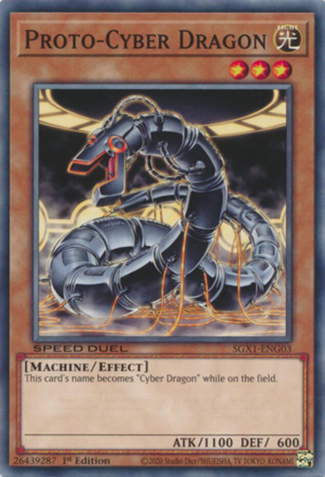 You are purchasing: Yugioh! Proto-Cyber Dragon - SGX1-ENG03 - Common - 1st Edition Condition: Near Mint | Language: English All photos are stock, unless mentioned otherwise. Card edition, rarity, etc. is listed in the title and description. Items will be shipped within 1 business day upon receiving cleared payment. We ship Monday through Friday in order to get the item(s) to you as quickly as possible Before leaving neutral or negative feedback, please contact us beforehand so we can discuss the issue. Feel free to message me with any questions you have regarding this auction or my policies. Shipping Options: Non-Expedited Shipping - $0.99 Orders $24.99 (exc. sales tax) and under will be sent in a white envelope in a card saver + soft sleeve using eBay's Standard Envelope tracking service. Orders $30.00 (exc. sales tax) and over will be sent with free USPS tracking information w/ toploader + soft sleeve. Priority Mail - $9.99 2-3 Day shipping Orders will be shipped in a flat rate envelope in a toploader + soft sleeve. Priority Express Mail - $29.99 1-2 Day shipping Orders will be shipped in a flate rate envelope in a toploader + soft sleeve. *All orders over $100 will be sent with free insurance. All orders over $250 will be sent with free insurance and signature confirmation.* Card Grading: Near Mint (NM) - Cards with this grade will show minimal to no wear from shuffling, play or handling and can have a nearly unmarked surface, crisp corners and unblemished edges outside of a few minimal flaws. Holographic cards are more scrutinized than non-holo cards. Lightly Played (LP) - Cards with this grade may have a few dings, light playwear and/or edgewear. A few surface scratches are acceptable. A crease or bend is acceptable if it is less than approximately 1/2 inch in size and is only visible on one side. Moderately Played (MP) - Cards with this grade may have dings, playwear and/or edgwear, 1 or 2 creases or bends that do not go through the length of the card. Cards may have a 1 or 2 deep scratches. Heavily Played (HP) - Cards with this grade may have dings, playwear and/or edgwear, creases or bends that may go the length of the card, markings and/or coloring, tears on the edges. Despite being the lowest of grading, these cards are still tournament legal. If you receive a card not in the stated condition, please contact us to return the item for a full refund. Please note that card centering is not guaranteed nor is it a factor when we grade a card for condition. Thank you for buying.