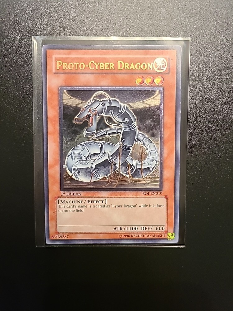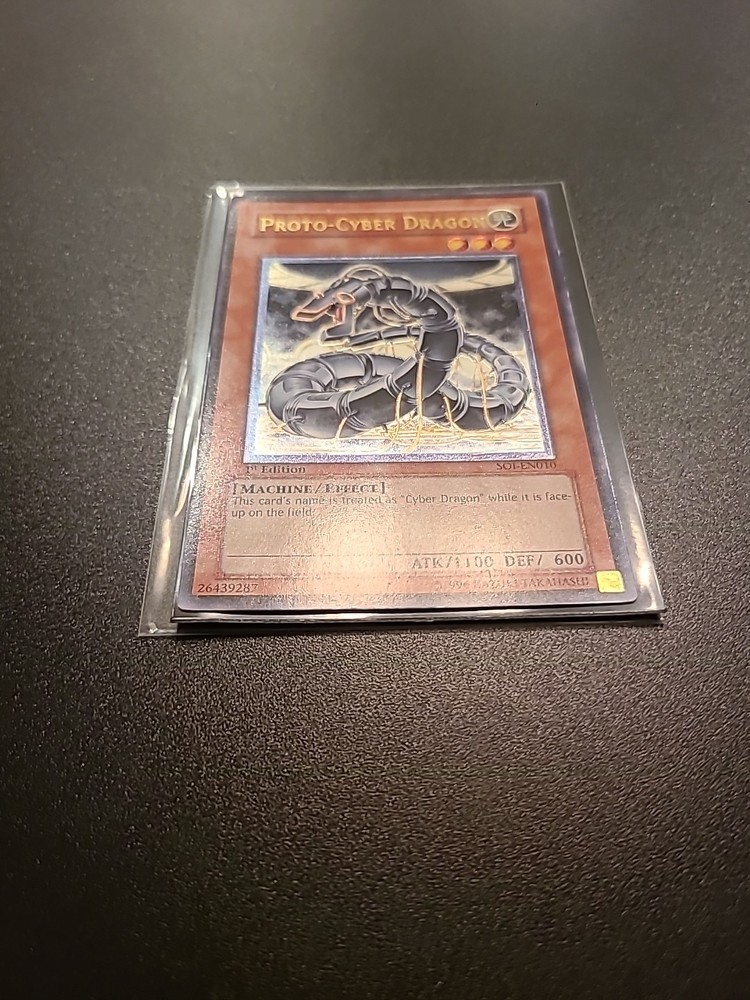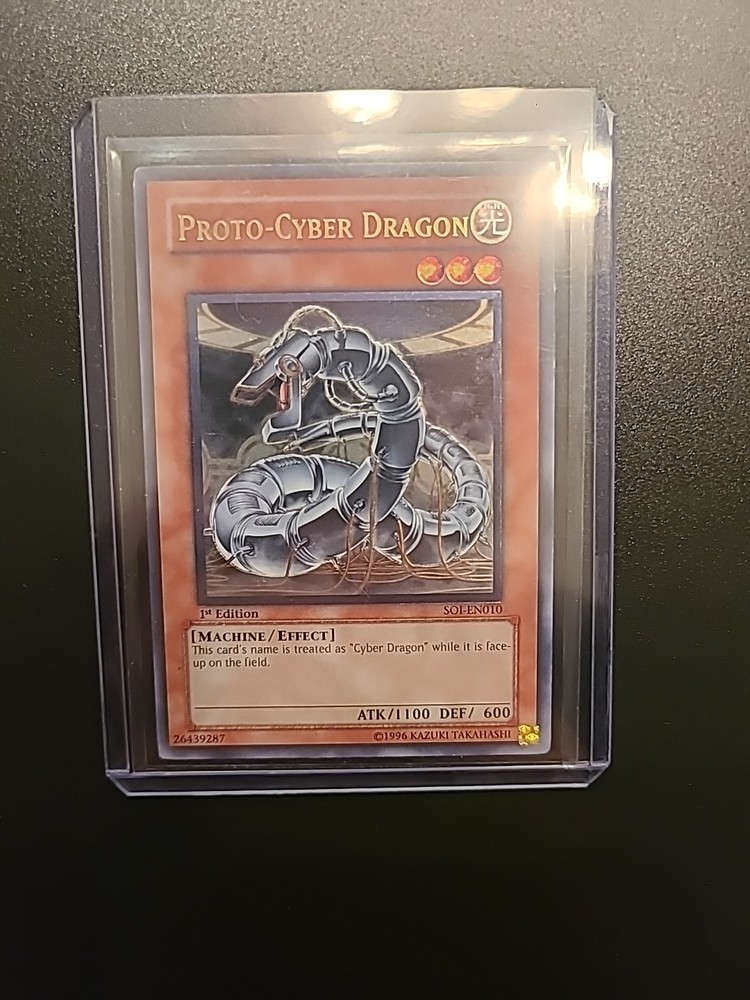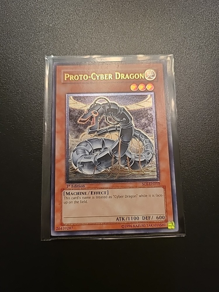Yugioh Proto-Cyber Dragon SOI-EN010 1st Edition Ultimate Rare. Condition is Ungraded. Shipped with Canada Post Expedited Lite.