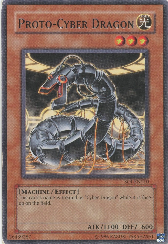 Yugioh Proto-Cyber Dragon SOI-EN010 Rare LP You can find more Yu-Gi-Oh cards of all value and rarity in our other listings All cards are in excellent condition unless stated otherwise and the photos are of cards we own but may not be the exact card you receive due to the quantities listed.