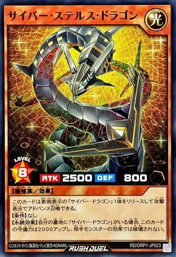 Item Title Description Yugioh Rush Duel RD/ORP1-JP023 Cyber Stealth Dragon Shipping Economy Shipping (No Tracking Japan Post) : $0 Standard Shipping (With Tracking Japan Post) : $4.00 Expedited Shipping (FedEx International Priority ): Additional fees International Buyers - Please Note: Import duties, taxes, and charges are not included in the item price or shipping cost. These charges are the buyer's responsibility. Please check with your country's customs office to determine what these additional costs will be prior to bidding or buying.