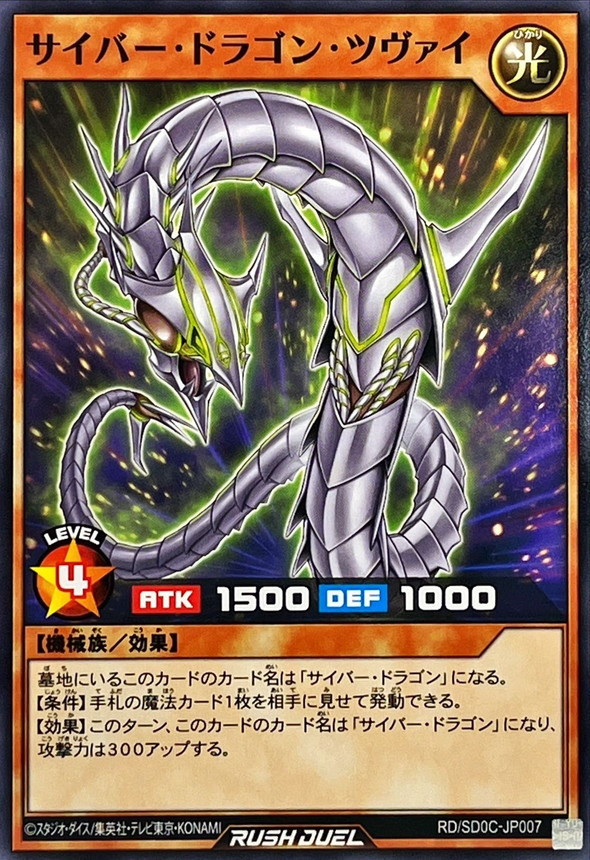 Item Title Description Yugioh Rush Duel RD/SD0C-JP007 Cyber Dragon Zwei Shipping Economy Shipping (No Tracking Japan Post) : $0 Standard Shipping (With Tracking Japan Post) : $4.00 Expedited Shipping (FedEx International Priority ): Additional fees International Buyers - Please Note: Import duties, taxes, and charges are not included in the item price or shipping cost. These charges are the buyer's responsibility. Please check with your country's customs office to determine what these additional costs will be prior to bidding or buying.