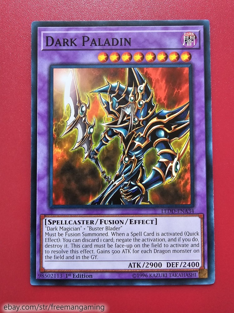 Item Description 1x Dark Paladin 1x Dark Magician 1x Buster Blader 1x Polymerization All items are in mint/near mint condition unless otherwise specified in the title or description. This listing is for the items named in the title and pictured here. What you see in the picture is what you will receive.