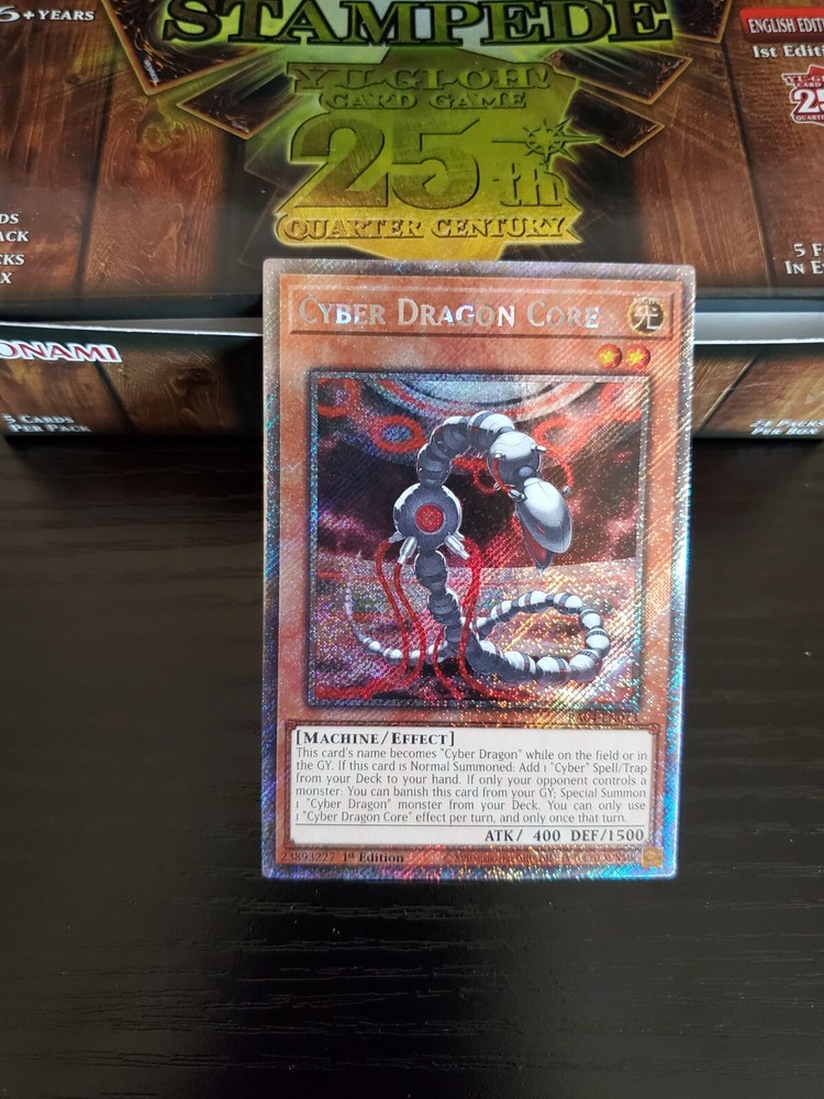 Yu-Gi-Oh! - Quarter Century Stampede - Cyber Dragon Core - Platinum Secret Rare - RA04 -EN013 Condition: Near Mint or better. Shipping: The card will be carefully shipped via USPS within 48 business hours of payment. Check out my eBay store for more great cards. I list new cards nearly every day.