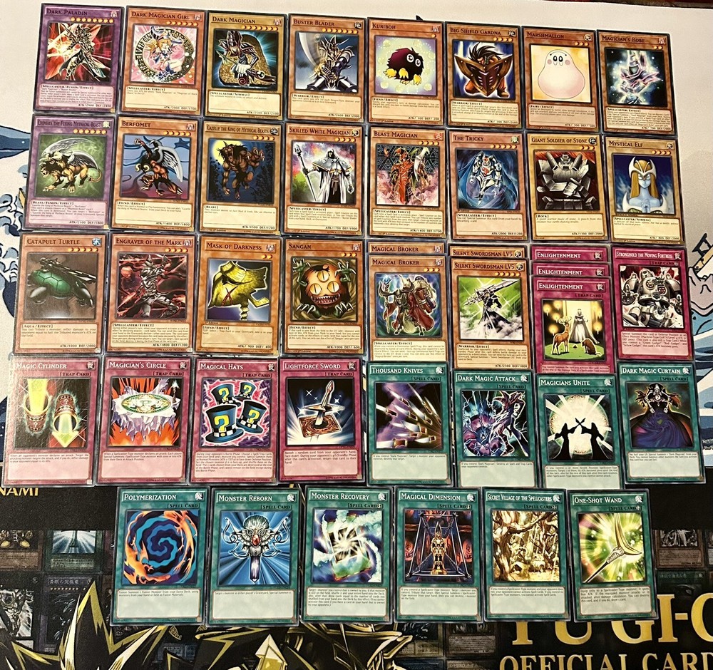 Hi, today you are buying a 42 Card Authentic Yugi Dark Magician Deck Comes with Dark Magician, Dark Magician Girl, Dark Paladin, and alot more! Cards are in mint to near mint condition. Few might be in light play condition. You will get exactly what you see in the pictures. Shipping: Includes tracking and will ship cards safely! I do offer free combined shipping so check my other listings out! Any Questions? Feel free to ask!