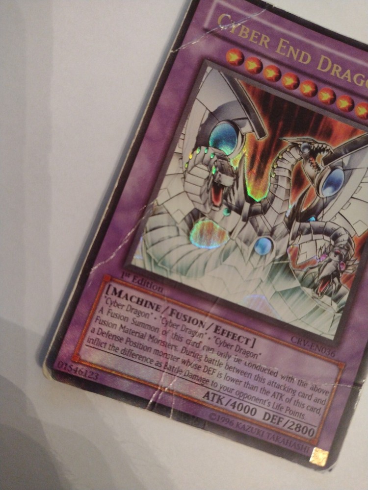 Cyber End Dragon CRV-EN036 1st Edition - Ultra Rare HP yugioh card. Condition is heavy play. Please ask for more pictures. I will send the card in a card sleeve and pack it well to avoid damage. Please, do look at the other YUGIOH cards I have listed.