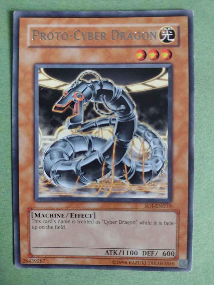 Yugioh card - Proto-Cyber Dragon - SOI-EN010 - Rare - Unlimited Edition LP. Condition is light play. I will send the card in a card sleeve and pack it well to avoid damage. Please, do look at the othe...