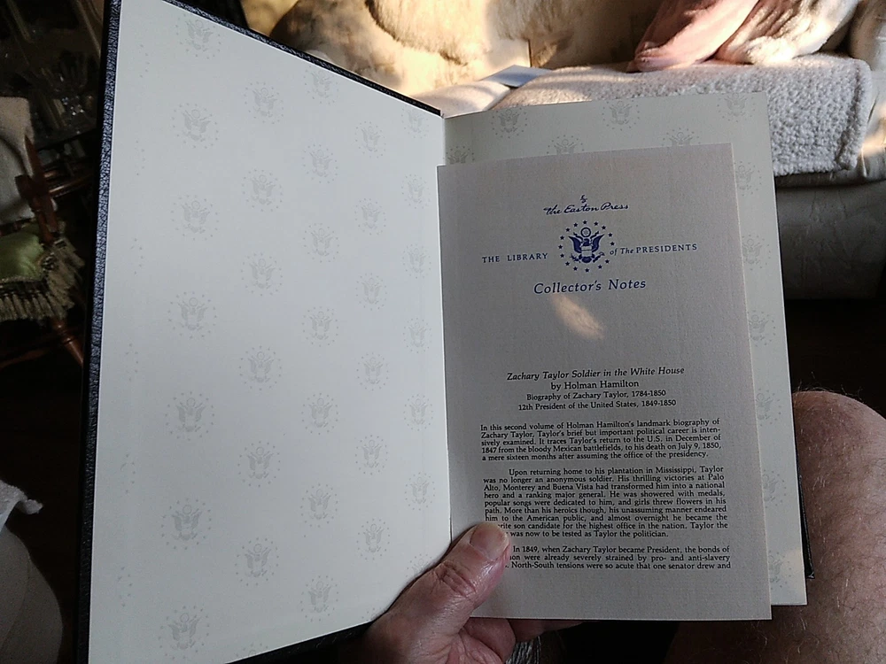 This 2 volume set by author Holman Hamilton titled "Zachary Taylor: Soldier of the Republic and White House" is a luxurious and collectible edition published by Easton Press in 1989. The leather-bound books are illustrated and considered a limited edition, making them a valuable addition to any collection of presidential biographies. Written in English and printed in the United States, this set offers a unique insight into the life of Zachary Taylor, a significant figure in North American history. Beautiful set in mint condition.