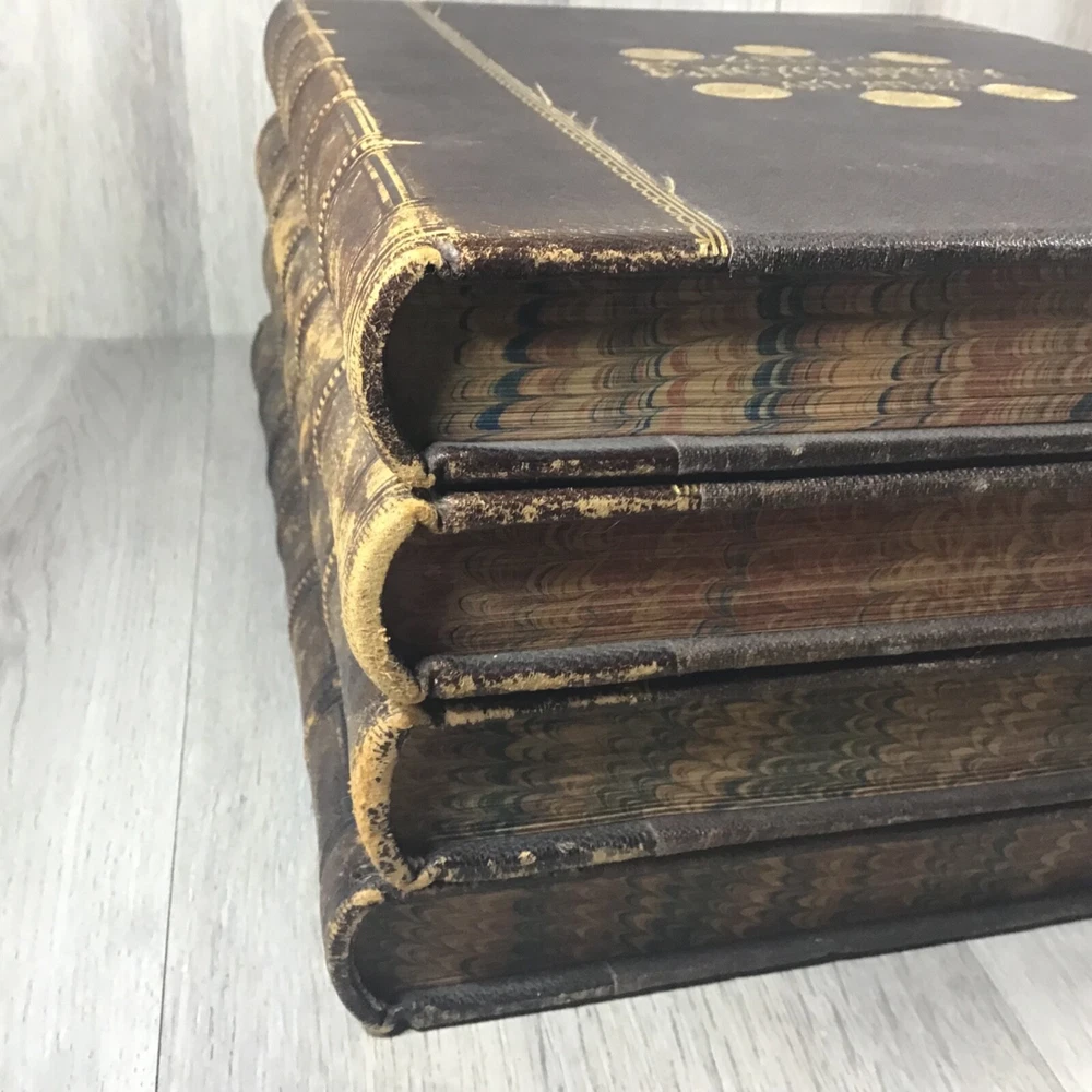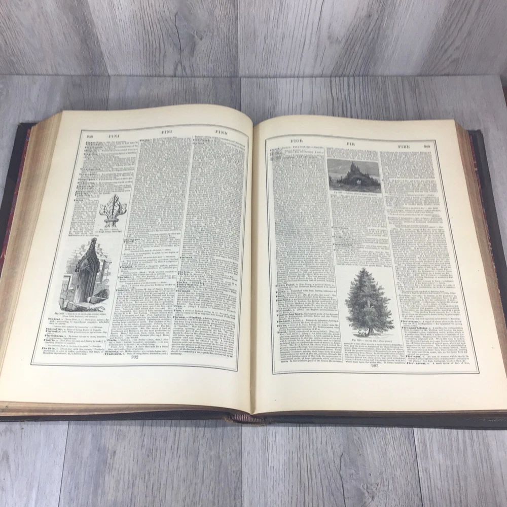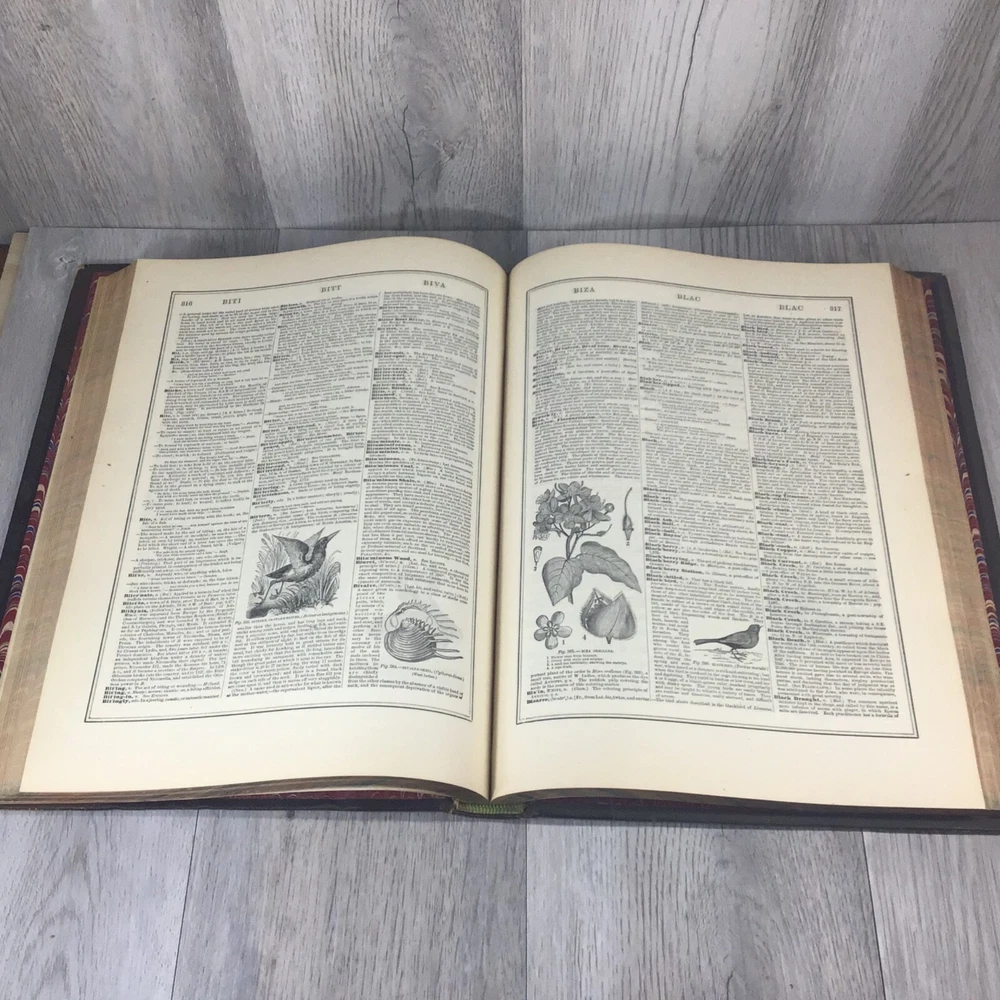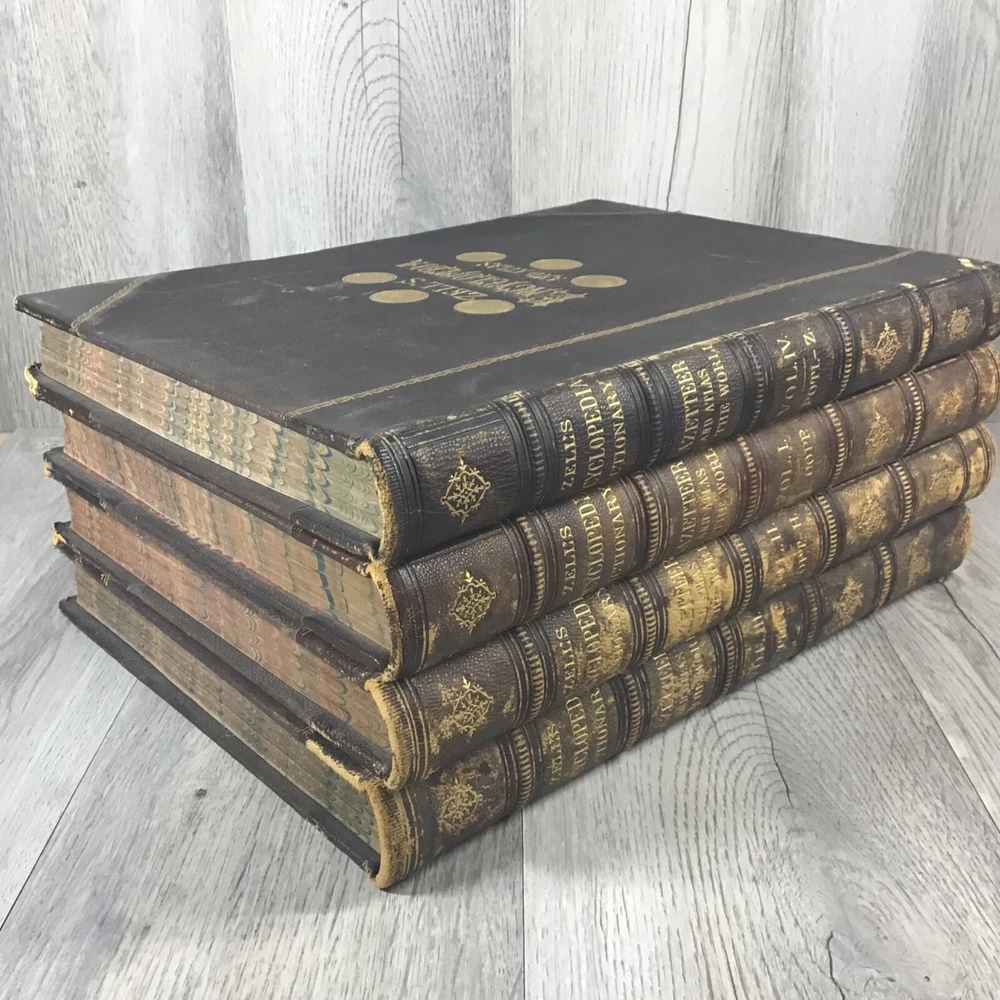 This antique set of ZELL'S 1883 Encyclopedia Dictionary Volumes I, II, lll & lV Gazateer are in good pre-owned condition, especially considering their age. There is obvious cosmetic wear on the covers particularly around the corners, please see the photos. There is what appears to be a manufacturing flaw on one page where the page was not properly cut, again, please see the photos. This flaw did not seem to have affected the colorful edge printing in any way. The interior of the books are in pretty decent condition as well. There is some slight yellowing as would be expected from books of this era, the inside cover sheets are very colorful and in great shape. While examining the pages of the books I did come across the personal notes and pictures that were hidden within these historic pages. I thought they were interesting and might add a flair of further interest to whoever gets these books… they are included in the listing. (I think they were notes that someone made preparing to play a “Guess Who I Am” game, using these volumes as background, study material. I just thought they were really cool and didn’t want to just throw them out).