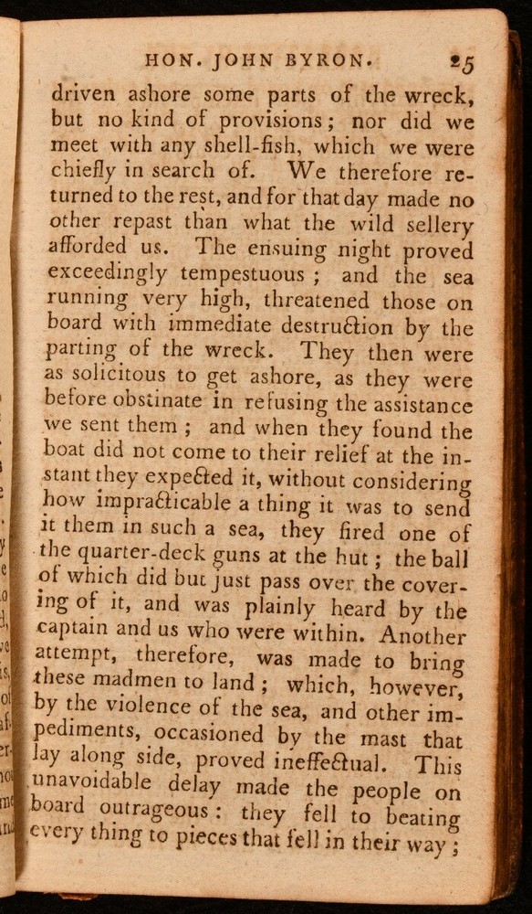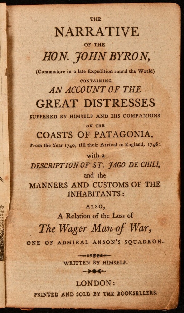 Click here to see our other books! The Narrative of the Hon. John Byron, (Commodore in a late Expedition round the World) Containing an Account of the Great Distresses Suffered by Himself and His Companions on the Coasts of Patagonia, From the Year 1740, Till Their Arrival in England, 1746: with a Description of St. Jago de Chili, and the Manners and Customs of the Inhabitants: Also, A Relation of the Loss of The Wager Man of War, One of Admiral Anson's Squadron. Written by Himself. John Byron; WM. Falconer [poem] c1800 Printed and Sold by the Booksellers : London 5" by 3" viii, [1], 201, [3]pp SUMMARY A scarce miniature edition of John Byron's voyage around the world on HMS Wager, which became shipwrecked on the coast of Chile. Early Edition,Leather Binding Overall Condition: Good This book weighs 0.5 KG when packed UK Postage: £ 3.99 US Postage: £ 15.99 EU Postage : £ 13.99 European Postage: £ 14.99 Asia Postage: £ 18.99 Worldwide Postage: £ 19.99 DESCRIPTION New edition. The work was originally published in 1768. With an illustrated frontispiece of John Byron meeting the Patagonians. An account of the voyage taken by John Byron, a midshipman who earned the nickname "Foul-Weather Jack" for his frequent encounters with bad weather at sea. The account describes the voyage, as well as the inhabitants of St Jago de Chili, which is now called Wager Island. At the rear of the work contains a poem titled 'The Shipwreck' by WM. Falconer, dedicated to the loss of HMS Wager. CONDITION In full calf binding. Externally, Hinges starting. Internally, generally firmly bound with the frontispiece loosening. Pages have blue tone due to paper used. Offsetting and slight spotting to the endpapers. Overall Condition: Good GLOSSARY OF TERMS Overall Condition (Dustwrapper condition rating is shown after that for the book itself, where a dustwrapper is present) Fine - Very well preserved copy showing very little wear Very Good Indeed - Only one or two minor faults, really a very attractive copy Very Good - Quite a wide term meaning no major faults but probably several smaller ones often expected given the age of the book, but still a respectable copy Good - Meaning not very good. Some more serious faults as will be described in the condition report under 'condition' Good Only - Meaning one or more faults that could really do with repair Fair - As with good only above but with other faults leaving a compromised copy even after repair Poor - Really bad and possibly seriously incomplete. We only sell books in this condition where their rarity or value makes them attractive none the less. Major defects will be described. GUARANTEE We offer a full money back guarantee on our descriptions. Please ask for details and conditions. We prefer PAYPAL. If you pay via PAYPAL we will post the item off the same or the next working day with the postage you have selected. Please note we cannot accept USD cheques