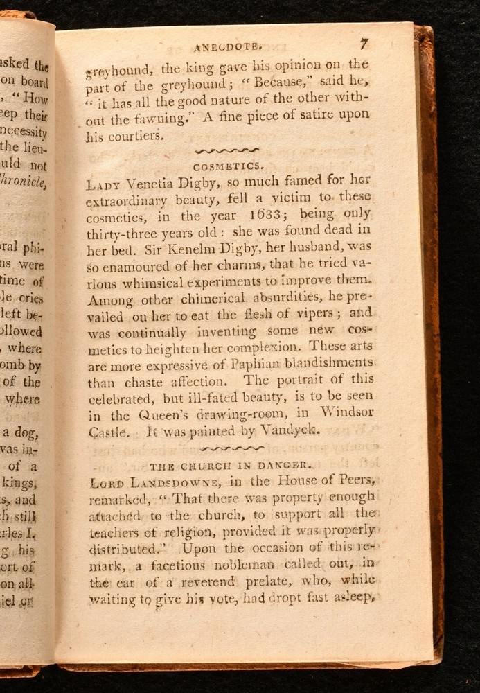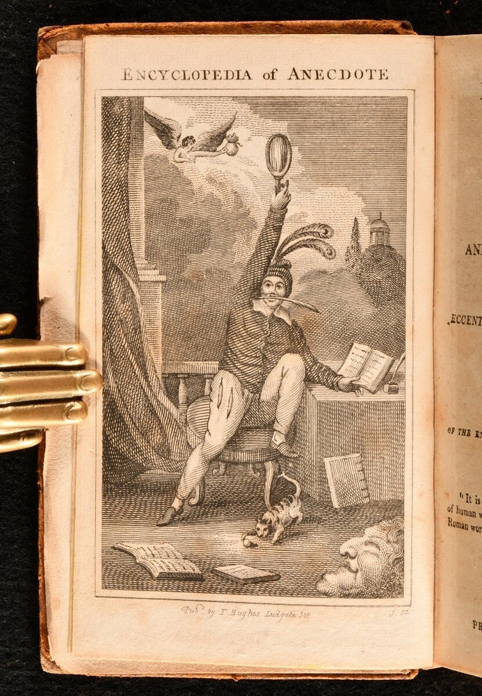 Click here to see our other books! Encyclopoedia of Anecdote, containing Anecdotes of Illustrious and Eccentric Characters of All Nations William Oxberry c1812 J. F. Hughes : London 6" by 4" 356pp SUMMARY A fantastic and scarce collection of character sketches from the turn of the nineteenth century. Leather Binding,Scarce Overall Condition: Good This book weighs 0.5 KG when packed UK Postage: £ 3.99 US Postage: £ 15.99 EU Postage : £ 13.99 European Postage: £ 14.99 Asia Postage: £ 18.99 Worldwide Postage: £ 19.99 DESCRIPTION Collected by William Oxberry (1784-1824), an English actor, publisher and writer. His other writings include 'The Theatrical Banquet, of the Actor's Budget', 'The History of Pugilism', 'The Flowers of Literature' and 'Oxberry's Anecdotes of the Stage'. He was a tragic and comic actor, although not always received favourably. With an illustrated frontispiece, this volume details short sketches of characters and incidents in society at the time. CONDITION In its original full calf binding. Externally a trifle rubbed, spine label is missing and the head of the spine is chipped, with the tail slightly rubbed as well, front board is near detached. Internally, front endpaper is loose but present, generally firmly bound and pages bright and clean. Overall Condition: Good GLOSSARY OF TERMS Overall Condition (Dustwrapper condition rating is shown after that for the book itself, where a dustwrapper is present) Fine - Very well preserved copy showing very little wear Very Good Indeed - Only one or two minor faults, really a very attractive copy Very Good - Quite a wide term meaning no major faults but probably several smaller ones often expected given the age of the book, but still a respectable copy Good - Meaning not very good. Some more serious faults as will be described in the condition report under 'condition' Good Only - Meaning one or more faults that could really do with repair Fair - As with good only above but with other faults leaving a compromised copy even after repair Poor - Really bad and possibly seriously incomplete. We only sell books in this condition where their rarity or value makes them attractive none the less. Major defects will be described. GUARANTEE We offer a full money back guarantee on our descriptions. Please ask for details and conditions. We prefer PAYPAL. If you pay via PAYPAL we will post the item off the same or the next working day with the postage you have selected. Please note we cannot accept USD cheques