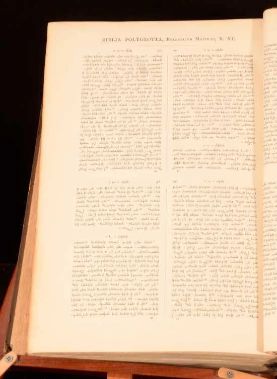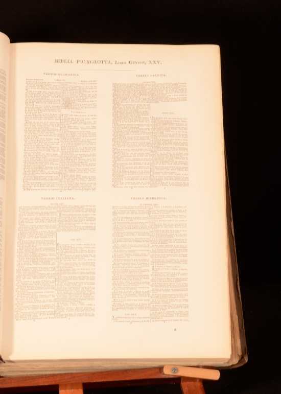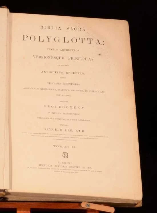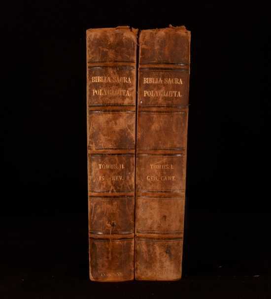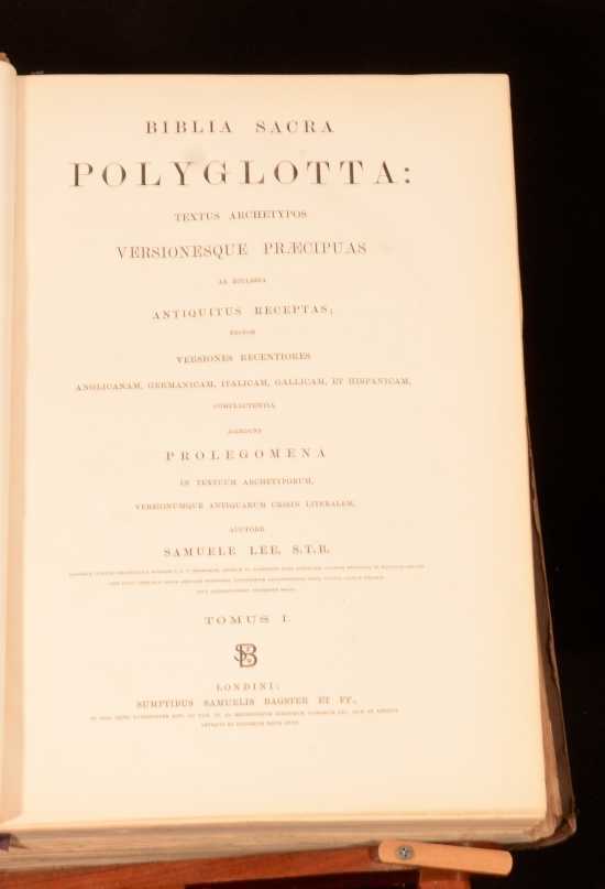 Click here to see our other books! Biblia Sacra Polyglotta: Textus Archetypos Versionesque Praecipuas Ab Ecclesia Antiquitus Receptas Samuele Lee c1829 Sumptibus, Samuelis,Bagster et FF. : London 15.5" by 9.5" Unpaginated SUMMARY A very scarce edition of this polyglott bible containing the Old and New Testament in over six languages. Leather Binding,Very Scarce Overall Condition: Good This book weighs 1 KG when packed UK Postage: £ 3.99 US Postage: £ 22.99 EU Postage : £ 16.99 European Postage: £ 17.99 Asia Postage: £ 22.99 Worldwide Postage: £ 28.99 DESCRIPTION Includes a prolegomenon with information of the preservation of ancient texts, information on the Hebrew and Arabic alphabet along with a comparison of the Hebrew text of Genesis with the Syrian version. The second volume contains various readings of the New Teastment in Syriac. The work runs from Genesis to Apocalypsis followed by various readings of the Greek New Testament. The author, Samuel Lee, was an English Orientalist and professor of Arabic and Hebrew at Cambridge. CONDITION In a morocco binding. Externally, sound with some sunning and marks to boards. Rubbing to spine with bumping to head and tail. Joints starting. Previous owner's bookplate to front pastedown and ink inscriptions to front free end-papers dated to 1890. Internally, firmly bound with pages bright and clean. Overall Condition: Good GLOSSARY OF TERMS Overall Condition (Dustwrapper condition rating is shown after that for the book itself, where a dustwrapper is present) Fine - Very well preserved copy showing very little wear Very Good Indeed - Only one or two minor faults, really a very attractive copy Very Good - Quite a wide term meaning no major faults but probably several smaller ones often expected given the age of the book, but still a respectable copy Good - Meaning not very good. Some more serious faults as will be described in the condition report under 'condition' Good Only - Meaning one or more faults that could really do with repair Fair - As with good only above but with other faults leaving a compromised copy even after repair Poor - Really bad and possibly seriously incomplete. We only sell books in this condition where their rarity or value makes them attractive none the less. Major defects will be described. GUARANTEE We offer a full money back guarantee on our descriptions. Please ask for details and conditions. We prefer PAYPAL. If you pay via PAYPAL we will post the item off the same or the next working day with the postage you have selected. Please note we cannot accept USD cheques