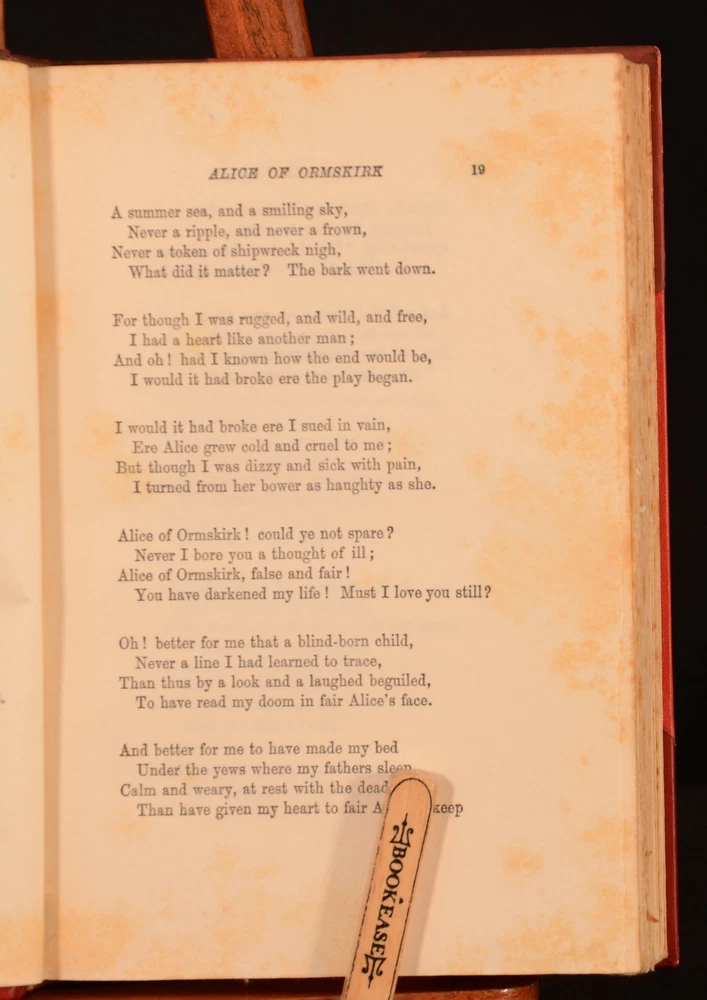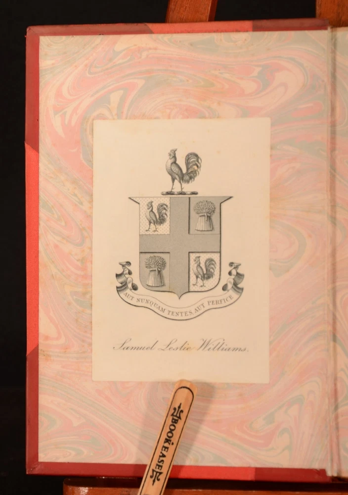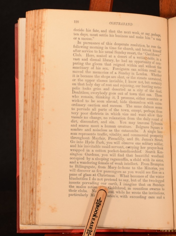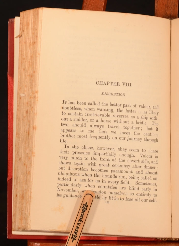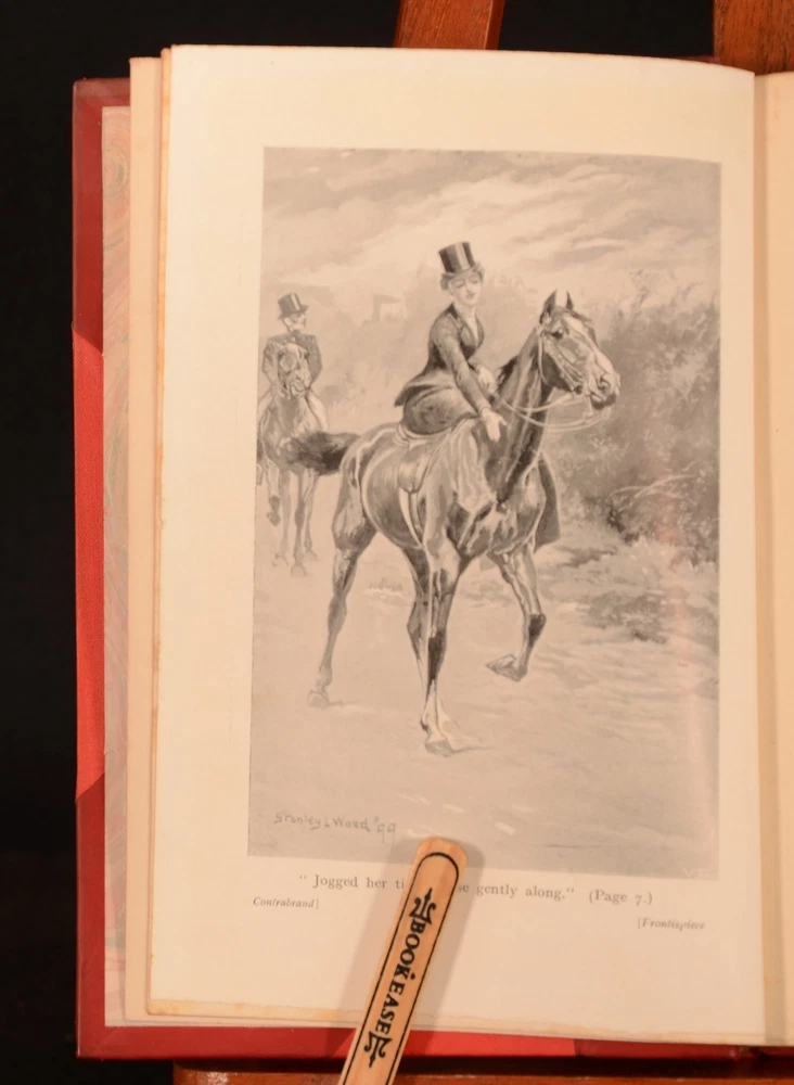 Click here to see our other books! The Works of Whyte-Melville Songs and Verses and The True Cross Riding Recollections Contraband or A Losing Hazard Market Harborough and Inside the Bar G. J. Whyte-Melville c1890 Ward, Lock & Co. : London 8" by 5.5" 356pp; 248pp; 300pp; SUMMARY A four volume set of works by the notable Scottish novelist and poet, George John Whyte-Melville. Illustrated,Leather Binding Overall Condition: Very Good This book weighs 2 KG when packed UK Postage: £ 3.99 US Postage: £ 29.99 EU Postage : £ 21.99 European Postage: £ 23.99 Asia Postage: £ 37.99 Worldwide Postage: £ 38.99 DESCRIPTION Containing the following works: 'Songs and Verses and The True Cross' 'Riding Recollections' 'Contraband or A Losing Hazard' 'Market Harborough and Inside the Bar' Featuring a bookplate of a 'Samuel Leslie Williams' to the front pastedown of 'Market Harborough'. In a uniform quarter polished calf binding with cloth boards and attractive marbled endpapers. Collated, presumed complete, with illustrations by John Charlton, Stanley L. Wood, and Samuel Edmund Waller. All volumes are undated, dated using Copac. CONDITION In a uniform quarter polished calf binding with cloth boards. Externally slightly faded and rubbed to spines, resulting in loss of leather to tail of 'Riding Recollections'. Very slightly rubbed to extremities. Internally firmly bound. Pages very bright and clean, slightly age toned to edges with scattered spotting to textblock. Occasional scattered spotting to the fore edge of the odd page. Light scattered spotting to first and last few pages. Spotting from title page to to page 8, 'Market Harborough'. Prior owner's bookplate to front pastedown, 'Market Harborough'. Overall Condition: Very Good GLOSSARY OF TERMS Overall Condition (Dustwrapper condition rating is shown after that for the book itself, where a dustwrapper is present) Fine - Very well preserved copy showing very little wear Very Good Indeed - Only one or two minor faults, really a very attractive copy Very Good - Quite a wide term meaning no major faults but probably several smaller ones often expected given the age of the book, but still a respectable copy Good - Meaning not very good. Some more serious faults as will be described in the condition report under 'condition' Good Only - Meaning one or more faults that could really do with repair Fair - As with good only above but with other faults leaving a compromised copy even after repair Poor - Really bad and possibly seriously incomplete. We only sell books in this condition where their rarity or value makes them attractive none the less. Major defects will be described. GUARANTEE We offer a full money back guarantee on our descriptions. Please ask for details and conditions. We prefer PAYPAL. If you pay via PAYPAL we will post the item off the same or the next working day with the postage you have selected. Please note we cannot accept USD cheques