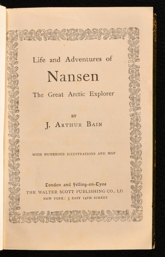 Click here to see our other books! Life and Adventures of Nansen the Great Arctic Explorer F. Arthur Bain c1897 The Walter Scott Publishing Co : London 7.5" by 5" [5], vi-xix, [2], 2-450pp SUMMARY A prize binding edition of this fascinating and touching biography on the Norwegian explorer Fridtjof Nansen, an illustrated biography. Illustrated,Leather Binding,Prize Binding Overall Condition: Good This book weighs 0.75 KG when packed UK Postage: £ 3.99 US Postage: £ 19.99 EU Postage : £ 15.99 European Postage: £ 16.99 Asia Postage: £ 21.99 Worldwide Postage: £ 25.99 DESCRIPTION An insightful biography on the life and career of the great Arctic explorer Fridjtof Nansen. Nansen is one of the most important and prominent Arctic explorers of all time, a Nobel Peace Prize laureate known for leading the first crossing of the Greenland interior in 1888. Illustrated with a frontispiece, one map, and many full-paged and in-text illustrations throughout. Collated, complete. By J. Arthur Bain. Undated, dated from the preface. In a prize binding from the Wesleyan High School for Girls, with a prize label to the front paste down. CONDITION In a full calf prize binding, rebacked with the original boards and spine restored. Externally, with a little discolouration to the spine and extremities. Evidence of former loss to the backstrip. Light marks to the boards and spine. Prize label to the front paste down. Bookseller's label to the rear paste down. Internally, firmly bound. Pages are bright and clean, with a few odd spots to the first and last few pages only. Overall Condition: Good GLOSSARY OF TERMS Overall Condition (Dustwrapper condition rating is shown after that for the book itself, where a dustwrapper is present) Fine - Very well preserved copy showing very little wear Very Good Indeed - Only one or two minor faults, really a very attractive copy Very Good - Quite a wide term meaning no major faults but probably several smaller ones often expected given the age of the book, but still a respectable copy Good - Meaning not very good. Some more serious faults as will be described in the condition report under 'condition' Good Only - Meaning one or more faults that could really do with repair Fair - As with good only above but with other faults leaving a compromised copy even after repair Poor - Really bad and possibly seriously incomplete. We only sell books in this condition where their rarity or value makes them attractive none the less. Major defects will be described. GUARANTEE We offer a full money back guarantee on our descriptions. Please ask for details and conditions. We prefer PAYPAL. If you pay via PAYPAL we will post the item off the same or the next working day with the postage you have selected. Please note we cannot accept USD cheques